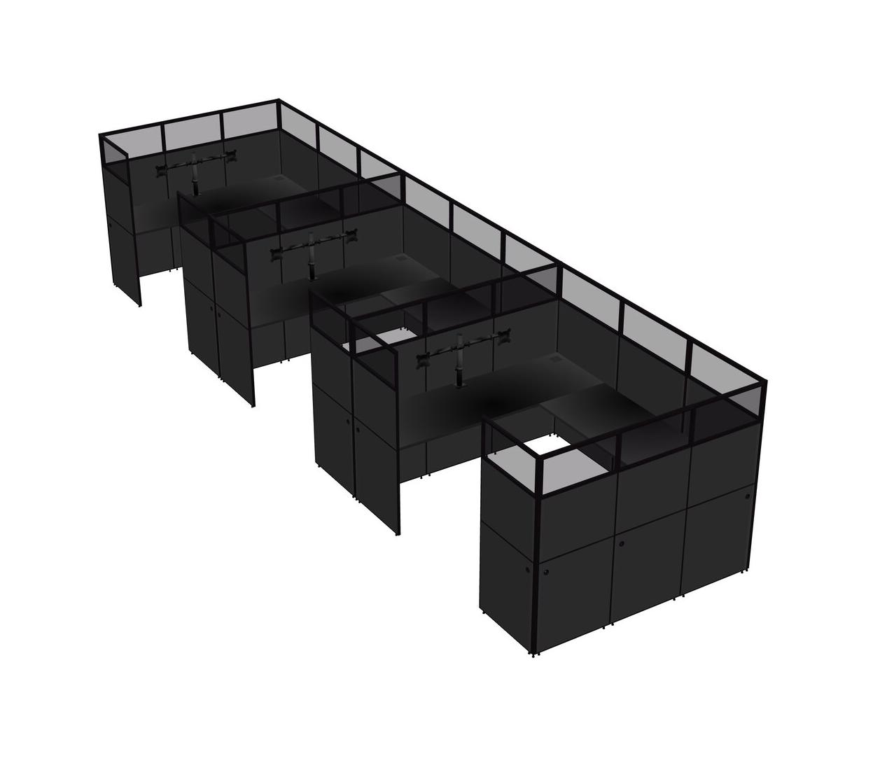 Système De Panneau En U Noir Pour 3 Personnes + Bras De Moniteur (bras Doubles) Pour 3 Utilisateur(s)