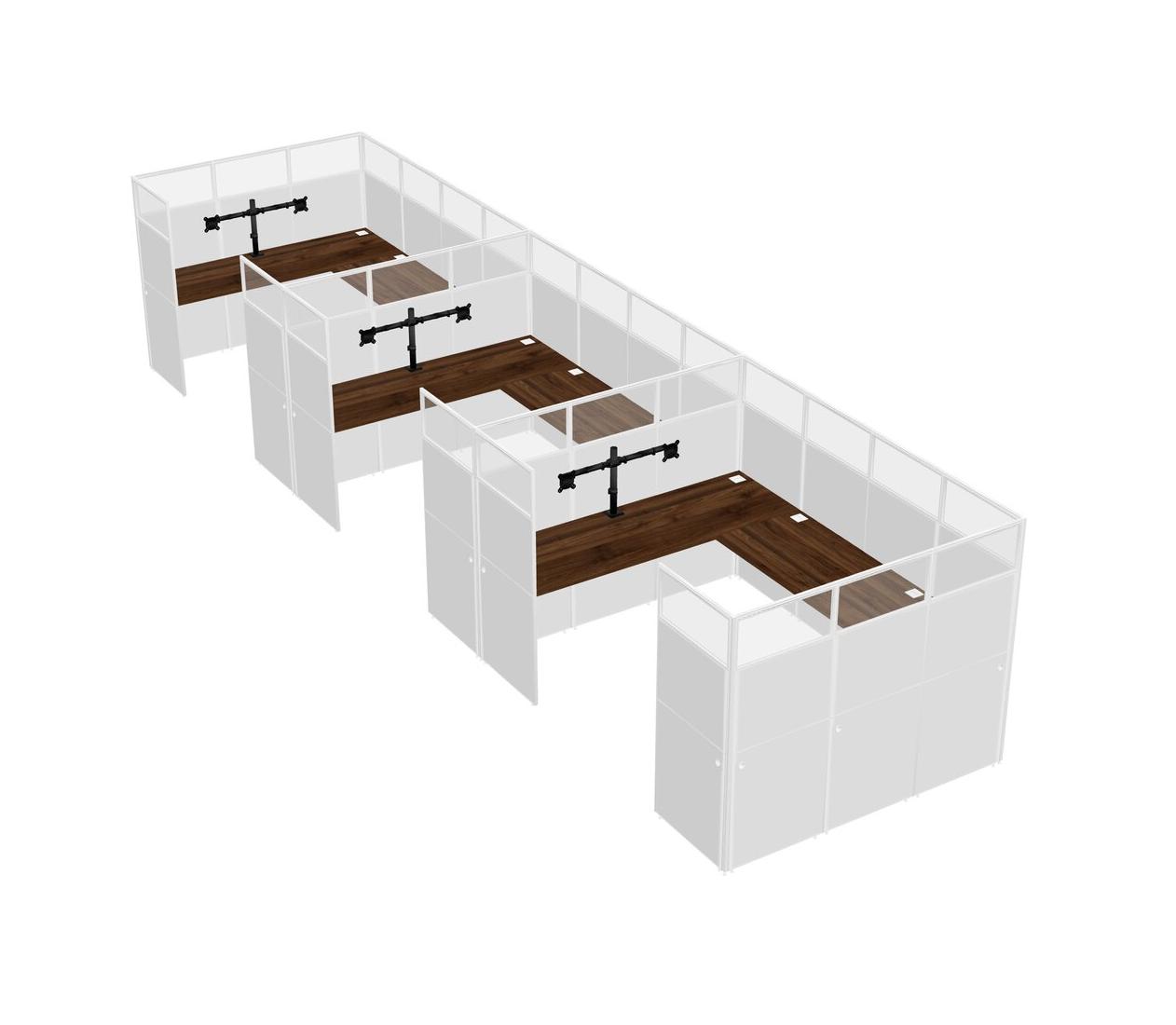 Système De Panneaux En U En Noyer Columbia Pour 3 Personnes + Bras De Moniteur (bras Doubles) Pour 3 Utilisateur(s)