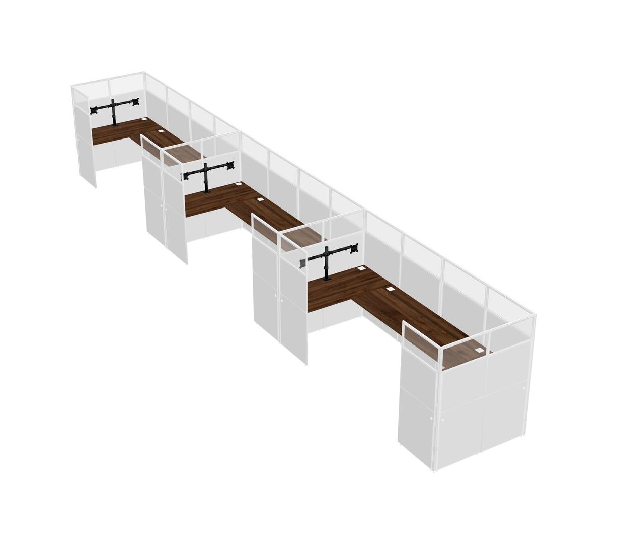 Système De Panneaux En U En Noyer Columbia Pour 3 Personnes + Bras De Moniteur (bras Doubles) Pour 3 Utilisateur(s)