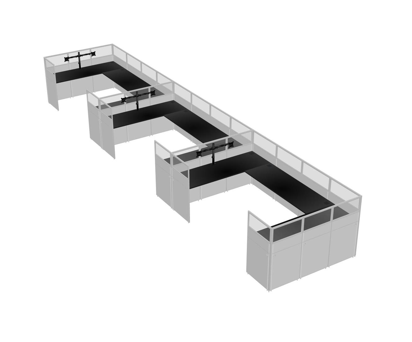 Système De Panneau En U Noir Pour 3 Personnes + Bras De Moniteur (bras Doubles) Pour 3 Utilisateur(s)