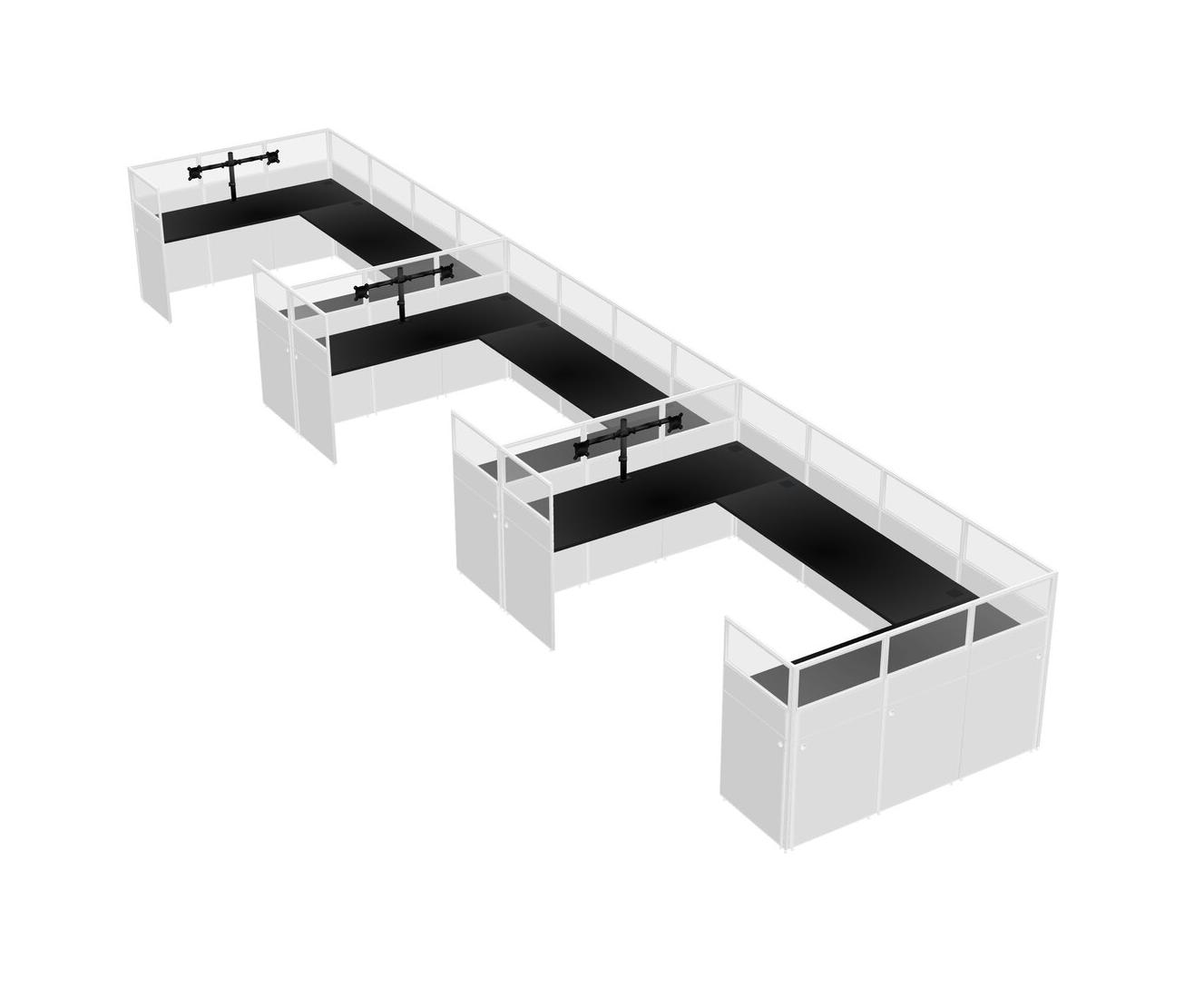 Système De Panneau En U Noir Pour 3 Personnes + Bras De Moniteur (bras Doubles) Pour 3 Utilisateur(s)
