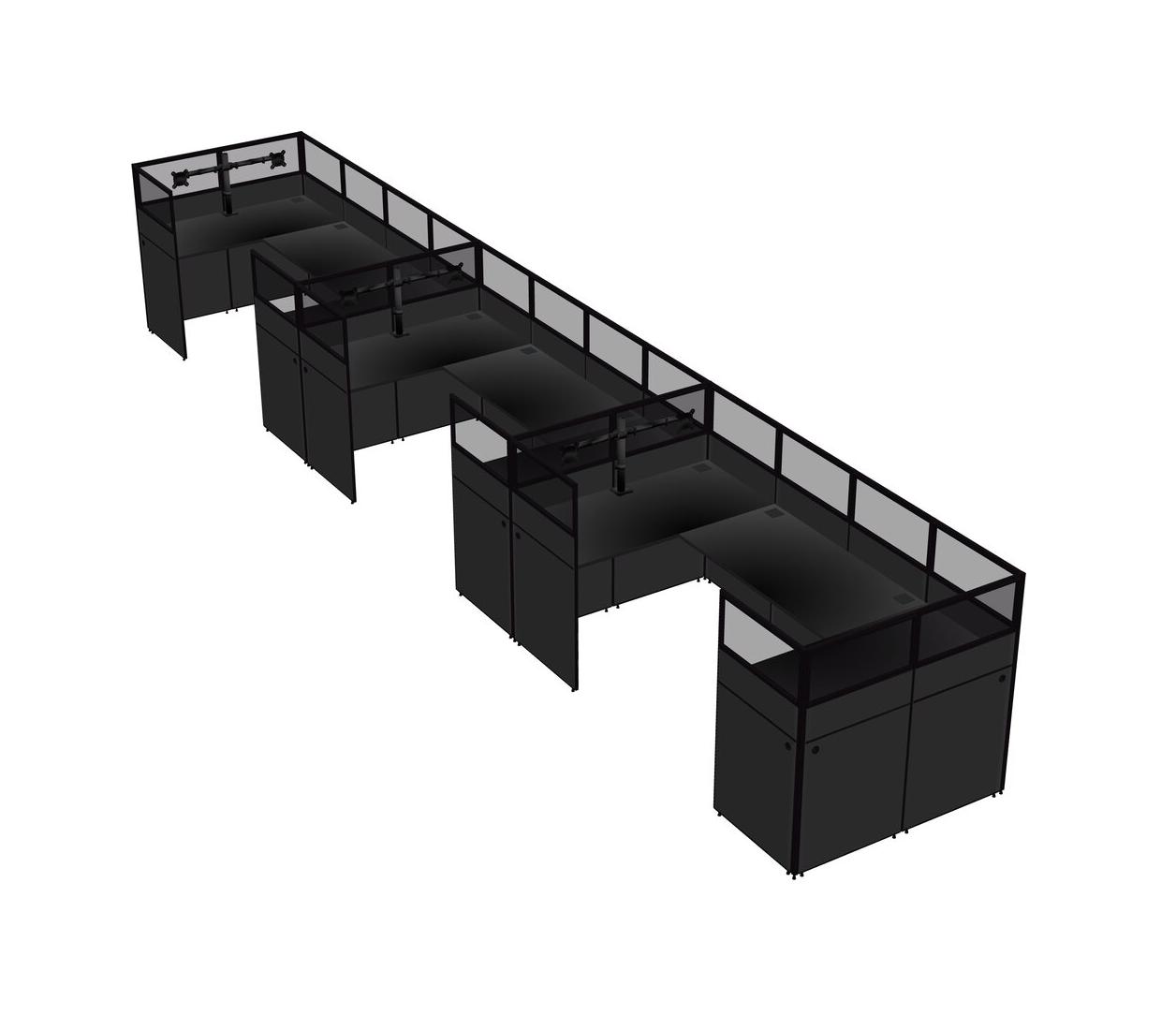 Système De Panneau En U Noir Pour 3 Personnes + Bras De Moniteur (bras Doubles) Pour 3 Utilisateur(s)