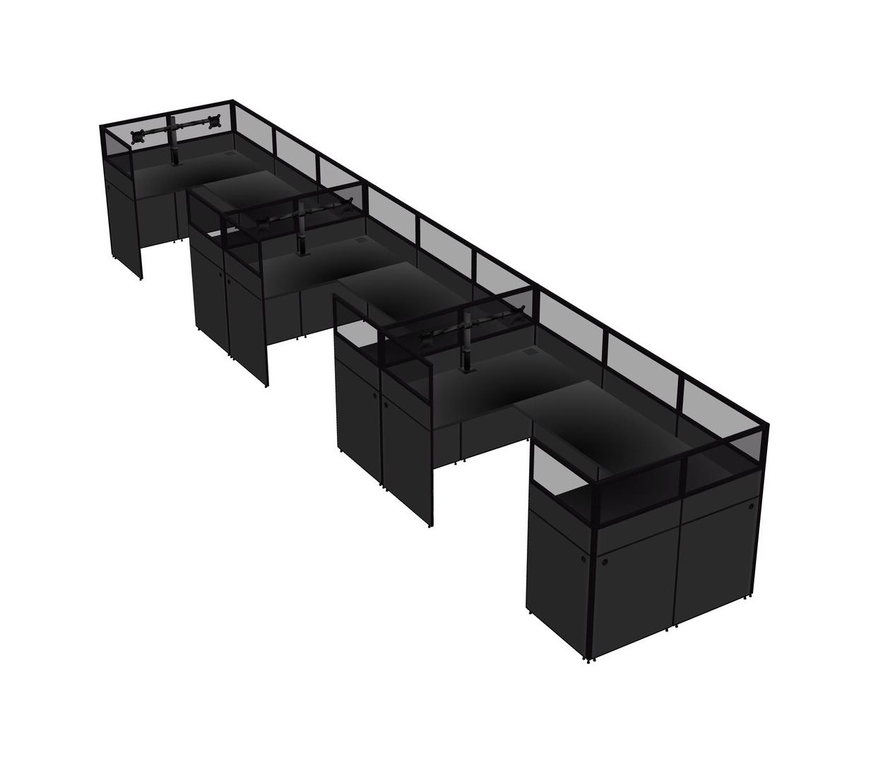 Système De Panneau En U Noir Pour 3 Personnes + Bras De Moniteur (bras Doubles) Pour 3 Utilisateur(s)