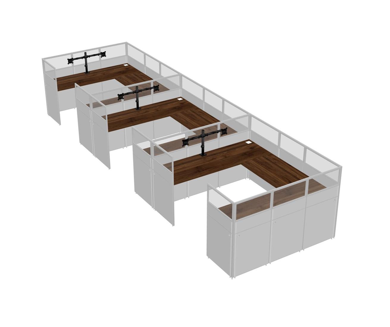 Système De Panneaux En U En Noyer Columbia Pour 3 Personnes + Bras De Moniteur (bras Doubles) Pour 3 Utilisateur(s)