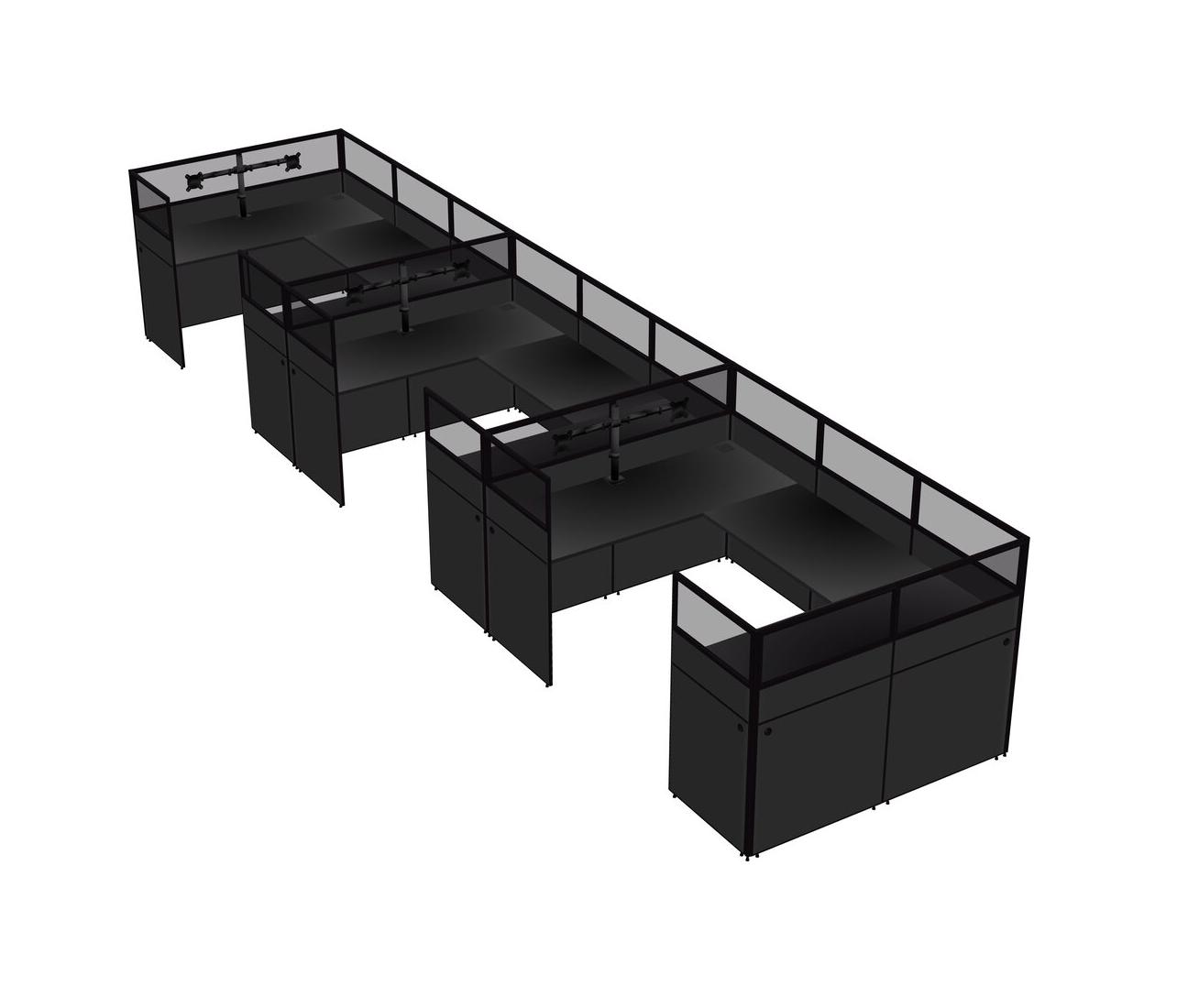 Système De Panneau En U Noir Pour 3 Personnes + Bras De Moniteur (bras Doubles) Pour 3 Utilisateur(s)