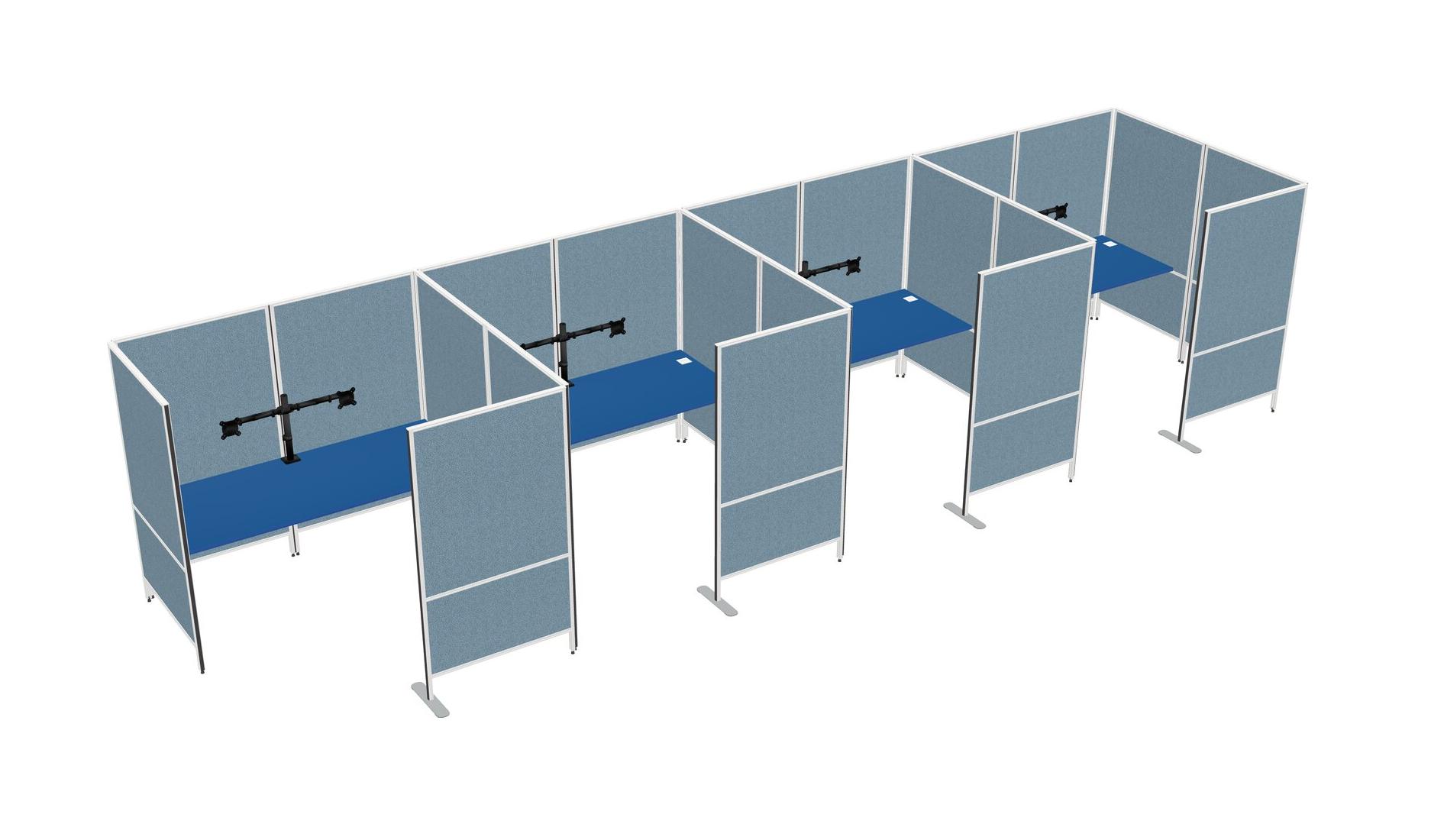 Système De Panneau Flexible Prism Blue Avec Intimité Pour 4 + bras De Moniteur (bras Doubles)