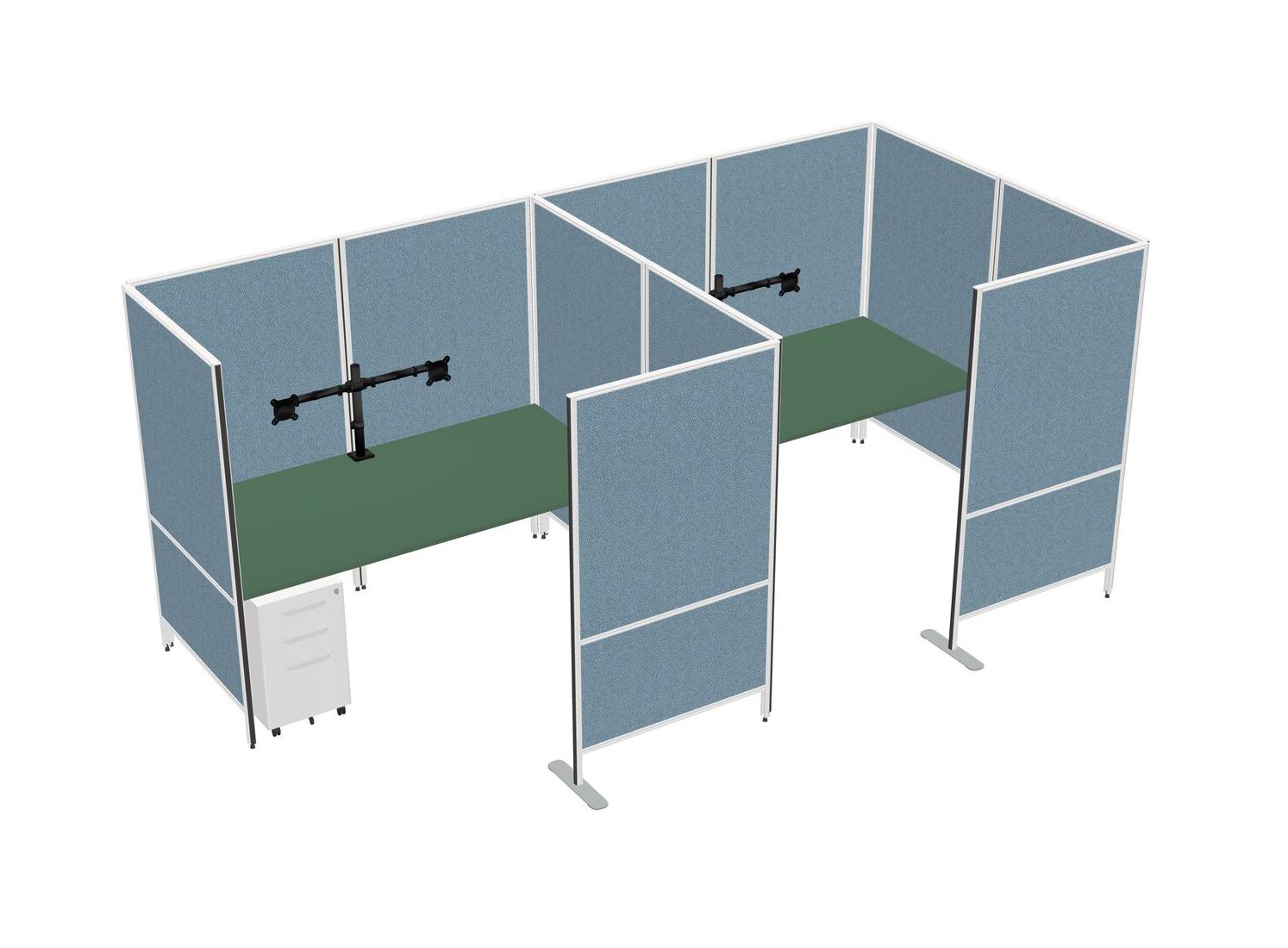 Système De Panneaux Flexibles Verts Avec Intimité Pour 2 Personnes + Tiroirs Mobiles En Métal + Bras D'écran (bras Doubles)