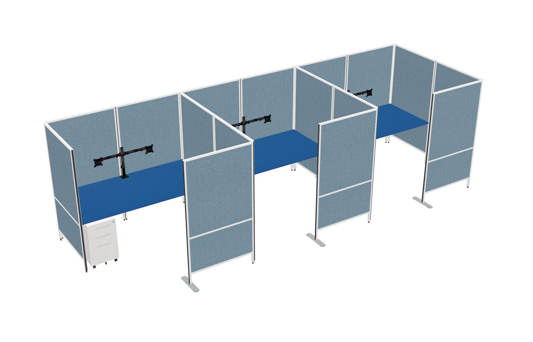 Système De Panneaux Flexibles Prism Blue Avec Intimité Pour 3 Personnes + Tiroirs Mobiles En Métal + Bras D'écran (bras Doubles)