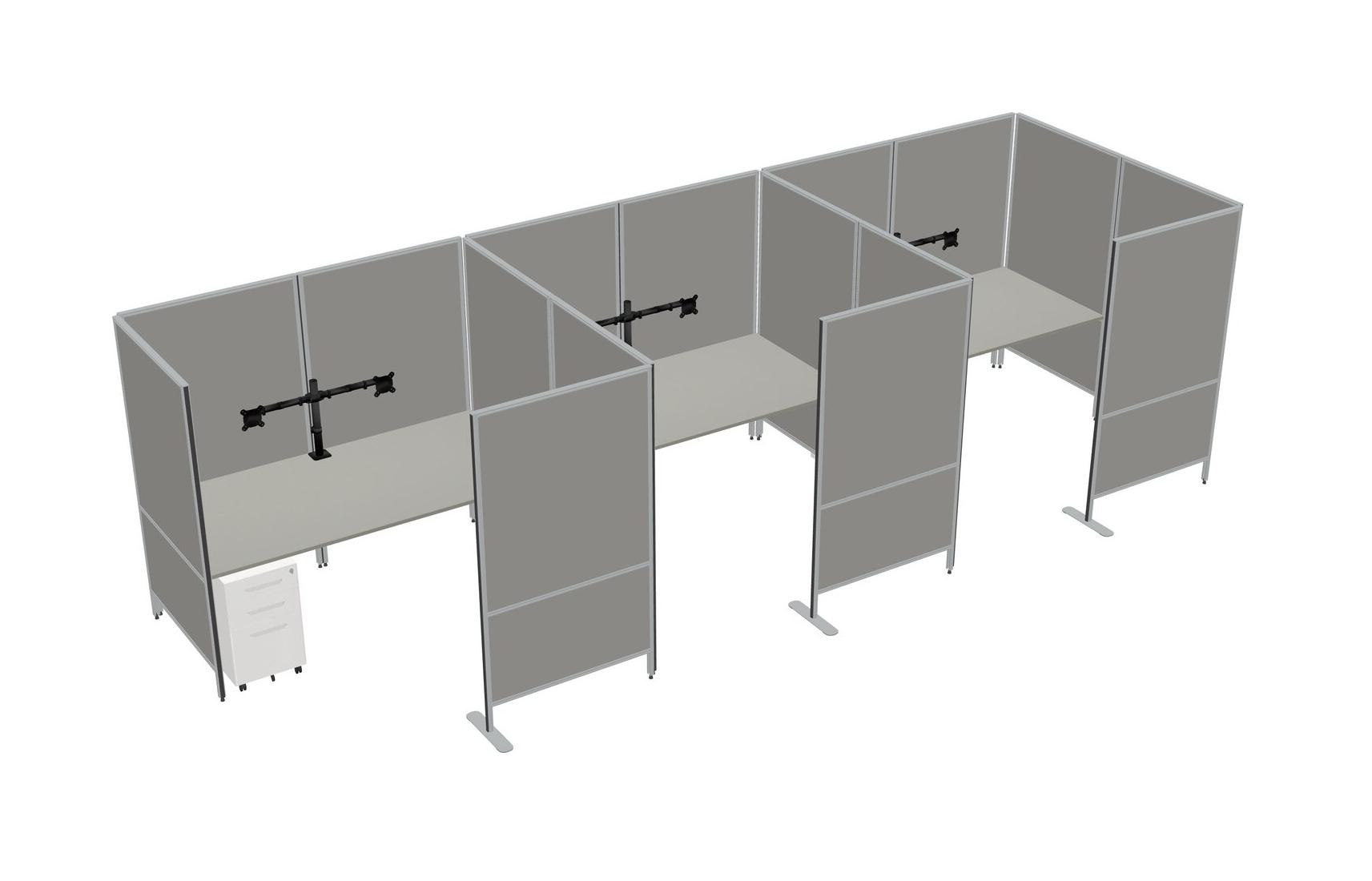 Système De Panneaux Flexibles Grey Shadows Avec Intimité Pour 3 Personnes + Tiroirs Mobiles En Métal + Bras D'écran (bras Doubles)
