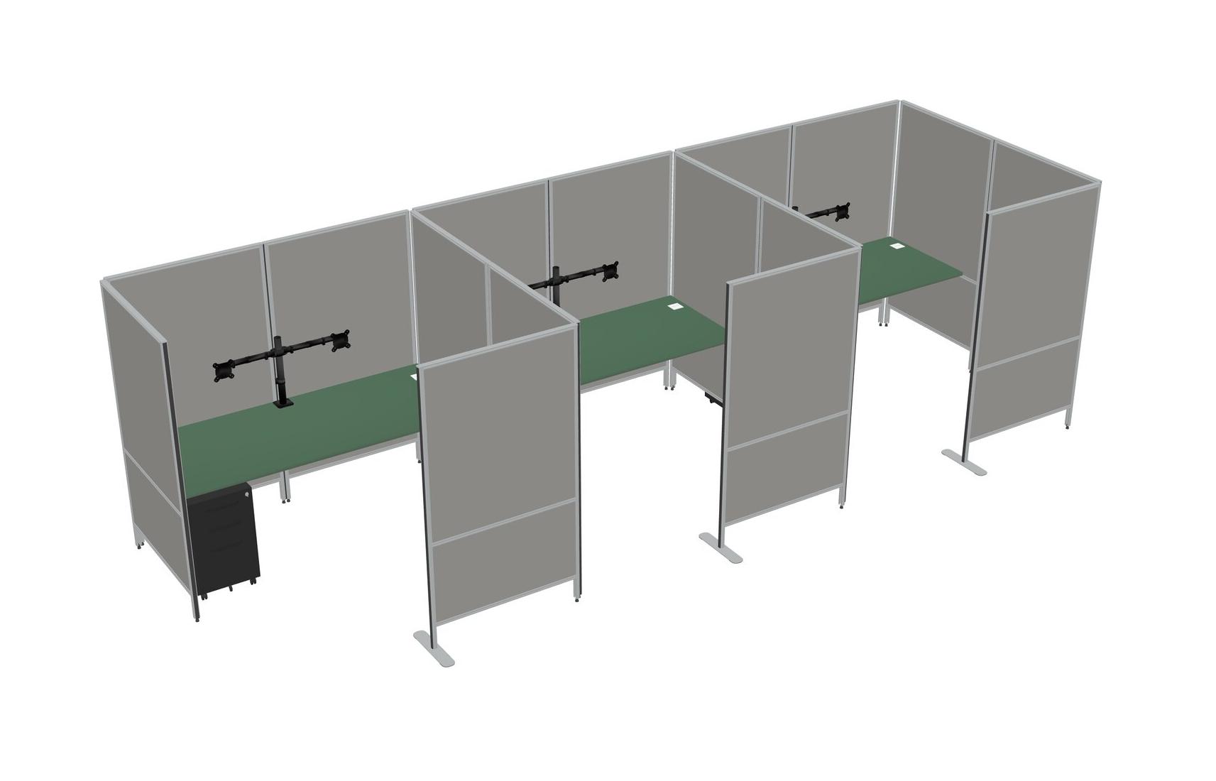 Système De Panneaux Flexibles Verts Avec Intimité Pour 3 Personnes + Tiroirs Mobiles En Métal + Bras D'écran (bras Doubles)