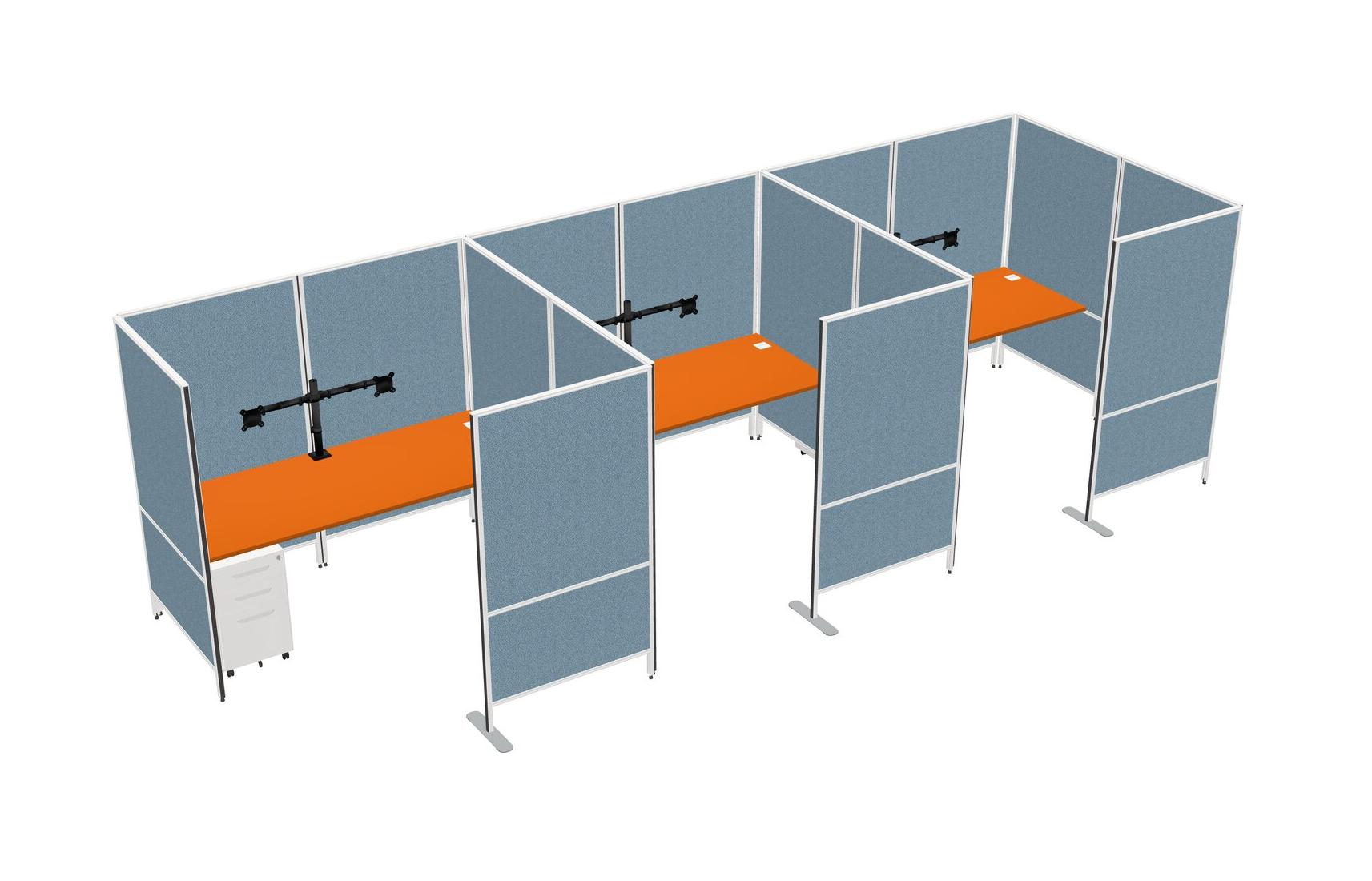Système De Panneaux Flexibles Orange Avec Intimité Pour 3 Personnes + Tiroirs Mobiles En Métal + Bras D'écran (bras Doubles)