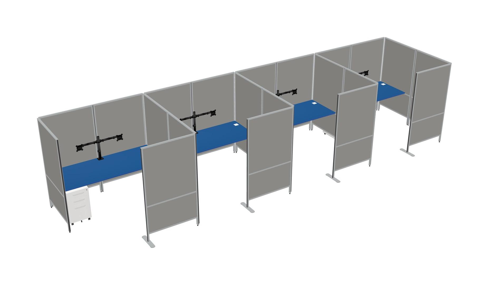 Système De Panneaux Flexibles Prism Blue Avec Intimité Pour 4 Personnes + Tiroirs Mobiles En Métal + Bras D'écran (bras Doubles)