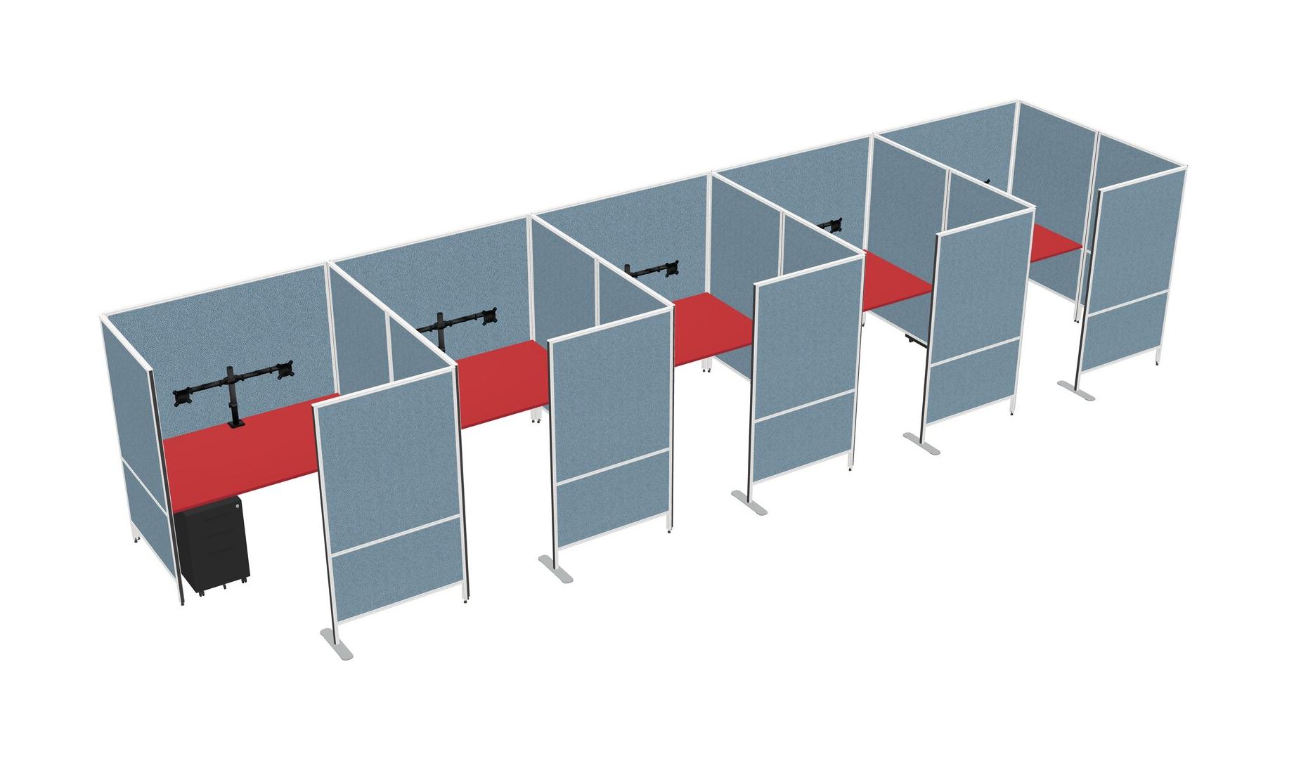 Système De Panneaux Flexibles Prism Red Avec Intimité Pour 5 Personnes + Tiroirs Mobiles En Métal + Bras D'écran (bras Doubles)