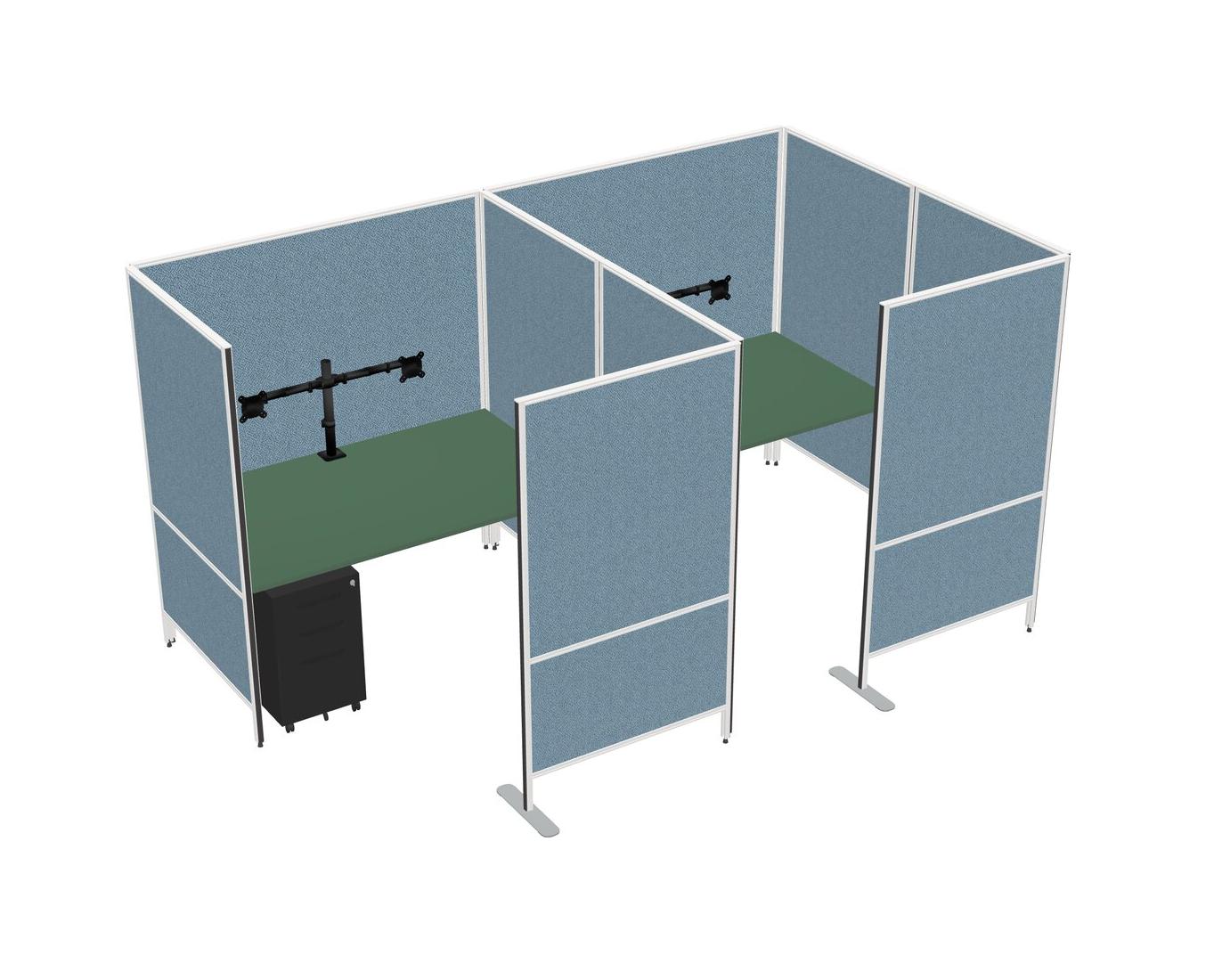 Système De Panneaux Flexibles Verts Avec Intimité Pour 2 Personnes + Tiroirs Mobiles En Métal + Bras D'écran (bras Doubles)