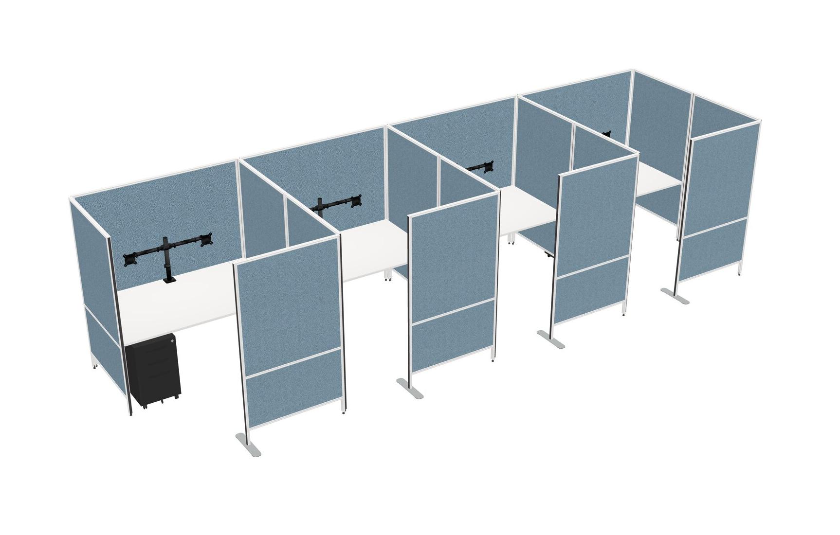 Système De Panneaux Flexibles Blancs Avec Intimité Pour 4 Personnes + Tiroirs Mobiles En Métal + Bras D'écran (bras Doubles)