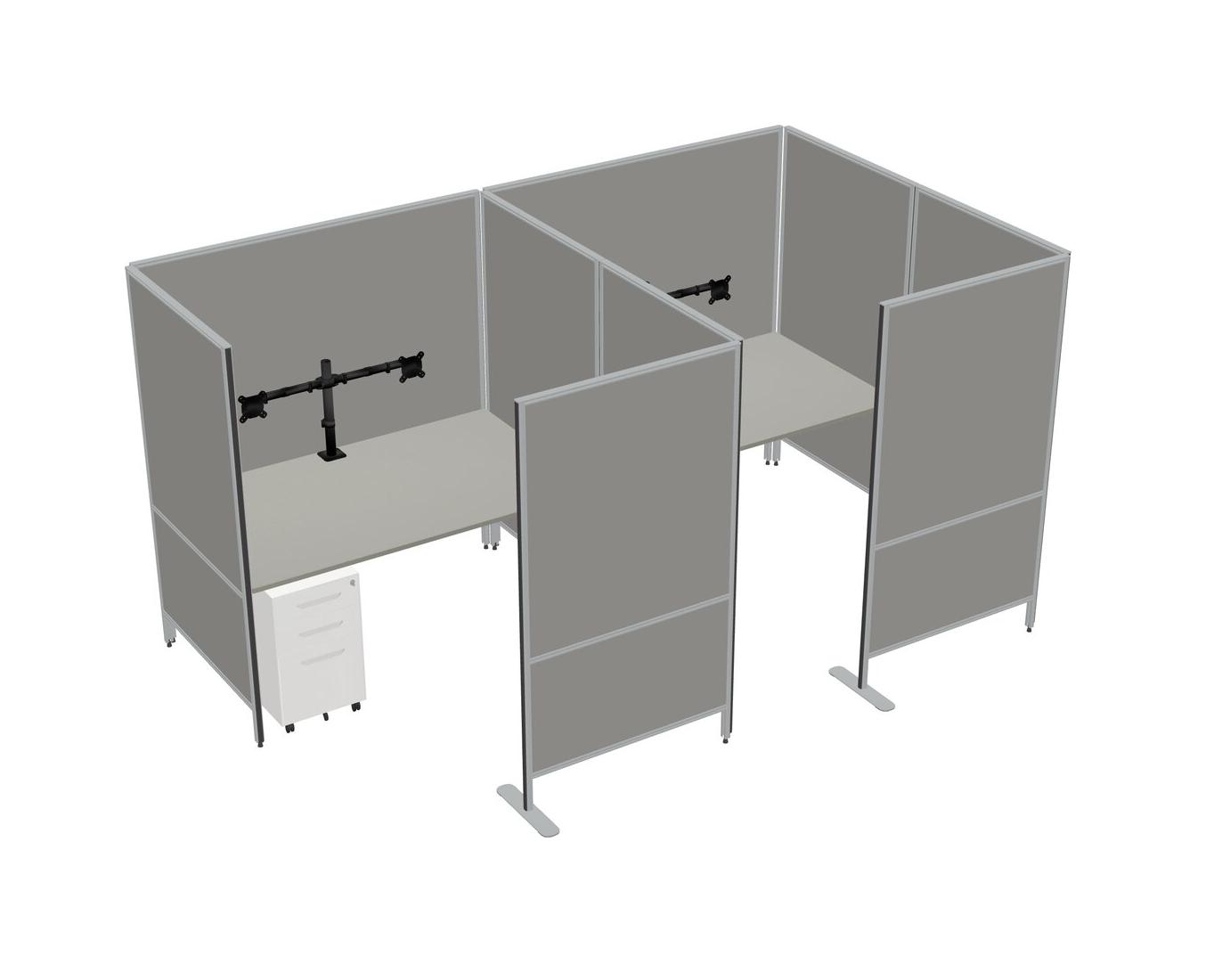 Système De Panneaux Flexibles Grey Shadows Avec Intimité Pour 2 Personnes + Tiroirs Mobiles En Métal + Bras D'écran (bras Doubles)
