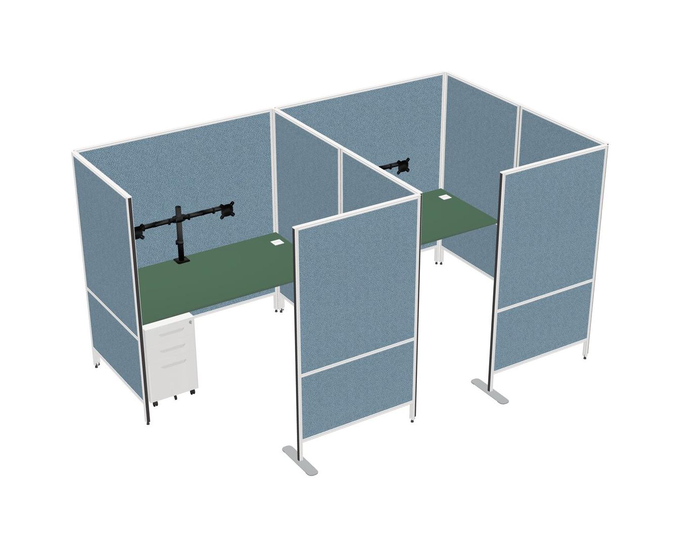 Système De Panneaux Flexibles Verts Avec Intimité Pour 2 Personnes + Tiroirs Mobiles En Métal + Bras D'écran (bras Doubles)