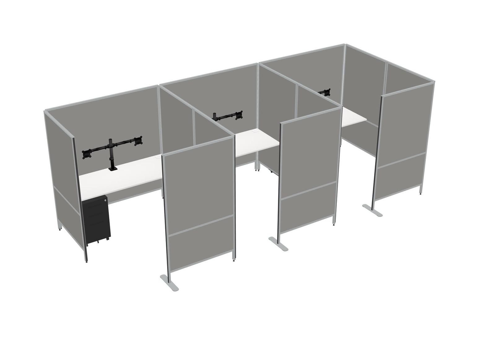 Système De Panneaux Flexibles Blancs Avec Intimité Pour 3 Personnes + Tiroirs Mobiles En Métal + Bras D'écran (bras Doubles)