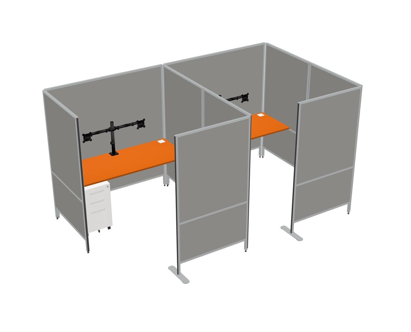 Système De Panneaux Flexibles Orange Avec Intimité Pour 2 Personnes + Tiroirs Mobiles En Métal + Bras D'écran (bras Doubles)