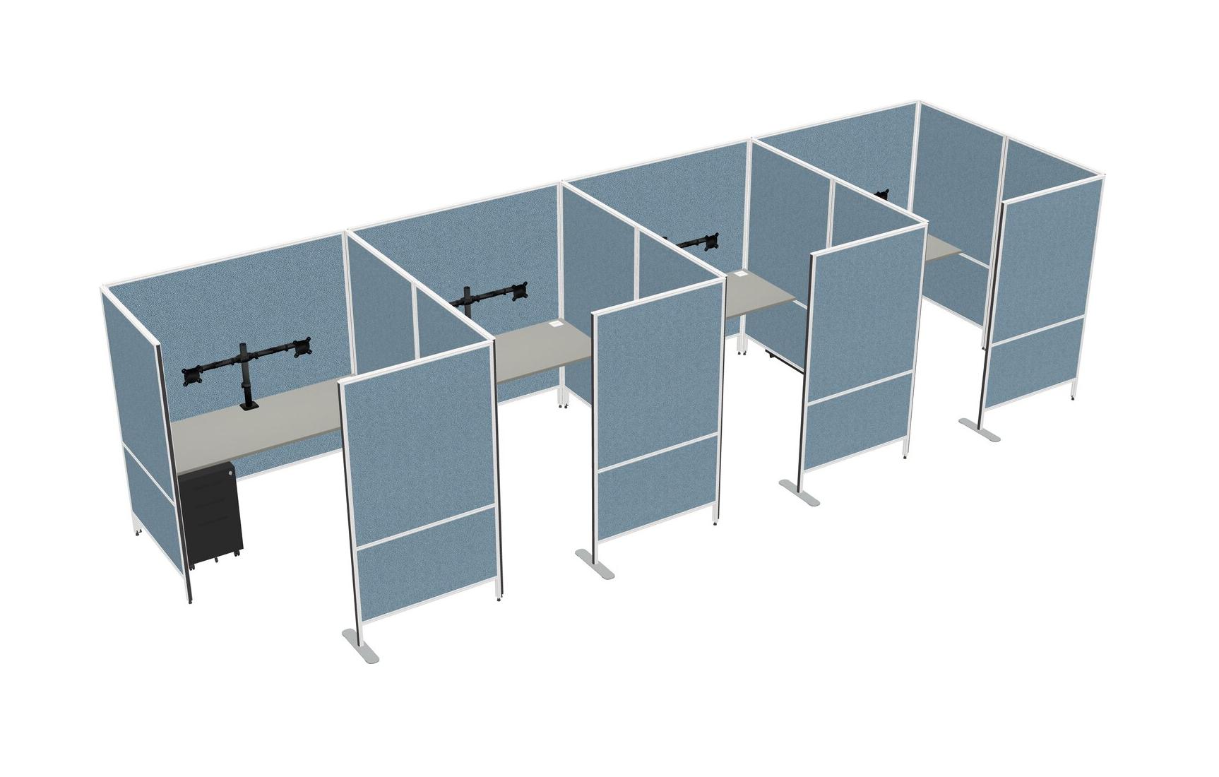 Système De Panneaux Flexibles Grey Shadows Avec Intimité Pour 4 Personnes + Tiroirs Mobiles En Métal + Bras D'écran (bras Doubles)