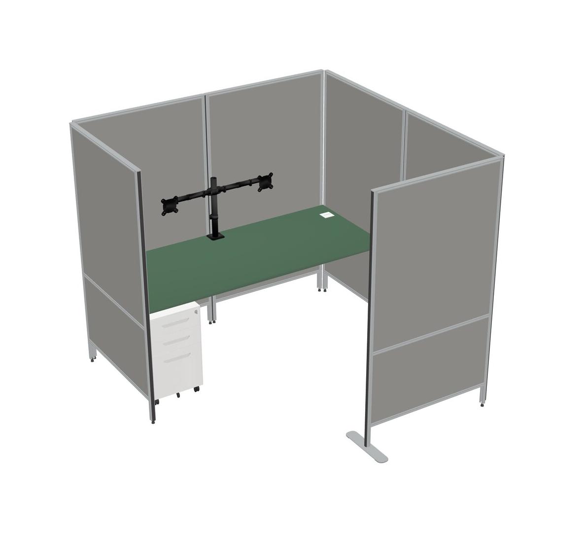Système De Panneaux Flexibles Verts Avec Intimité Pour 1 Personne + Tiroirs Mobiles En Métal + Bras D'écran (bras Doubles)