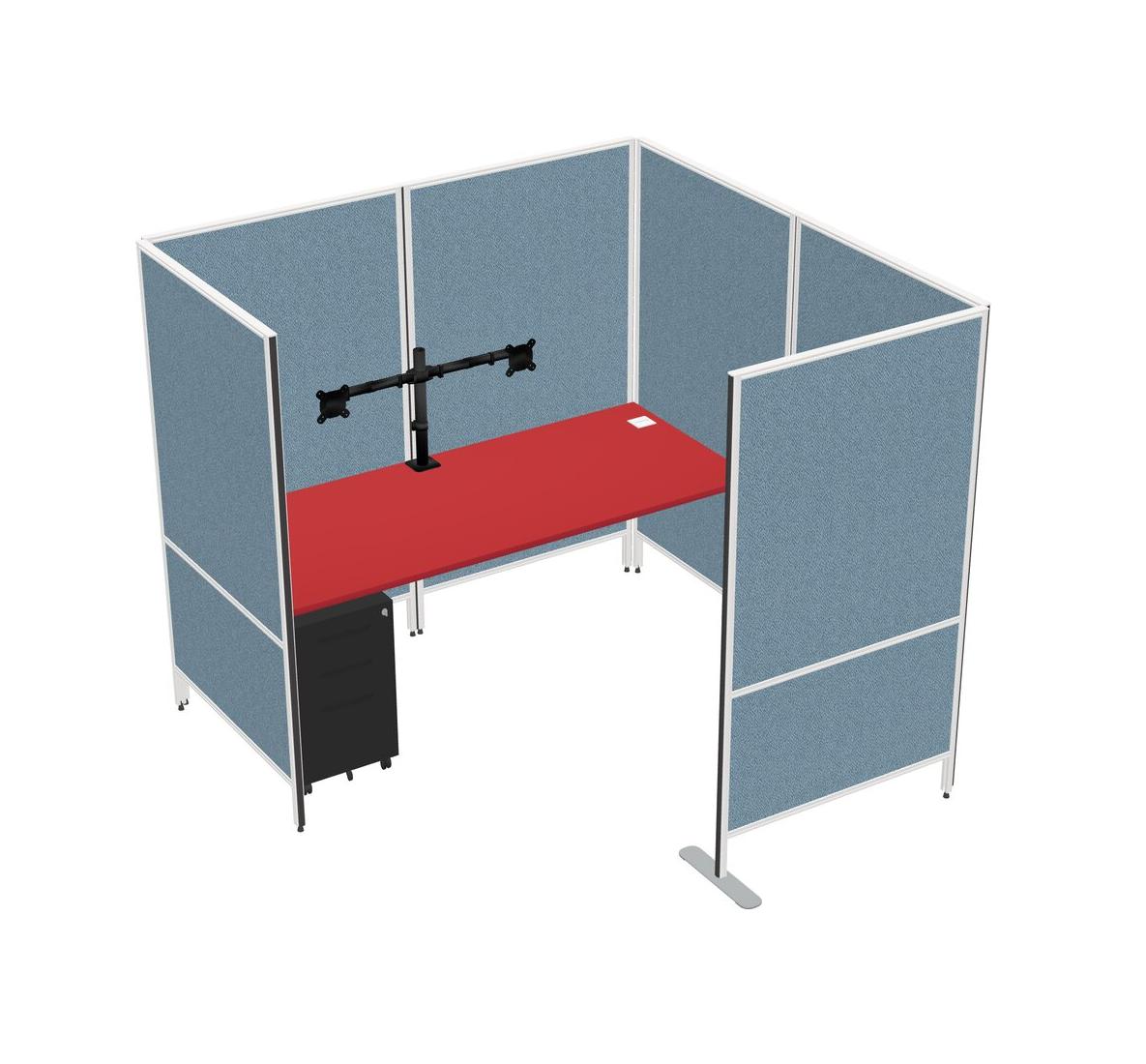 Système De Panneaux Flexibles Prism Red Avec Intimité Pour 1 Personne + Tiroirs Mobiles En Métal + Bras D'écran (bras Doubles)