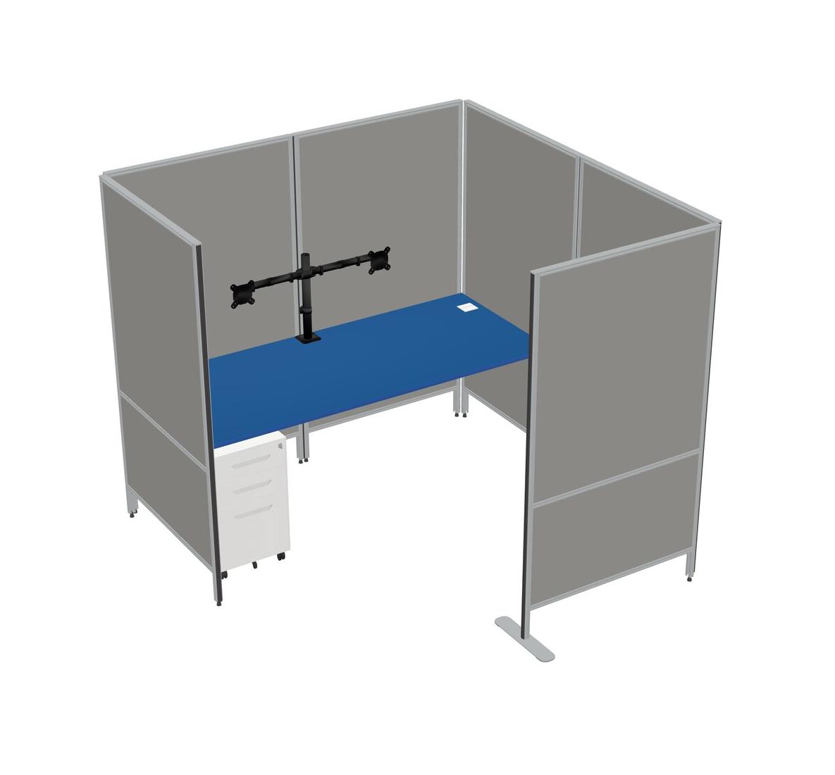Système De Panneaux Flexibles Prism Blue Avec Intimité Pour 1 Personne + Tiroirs Mobiles En Métal + Bras D'écran (bras Doubles)