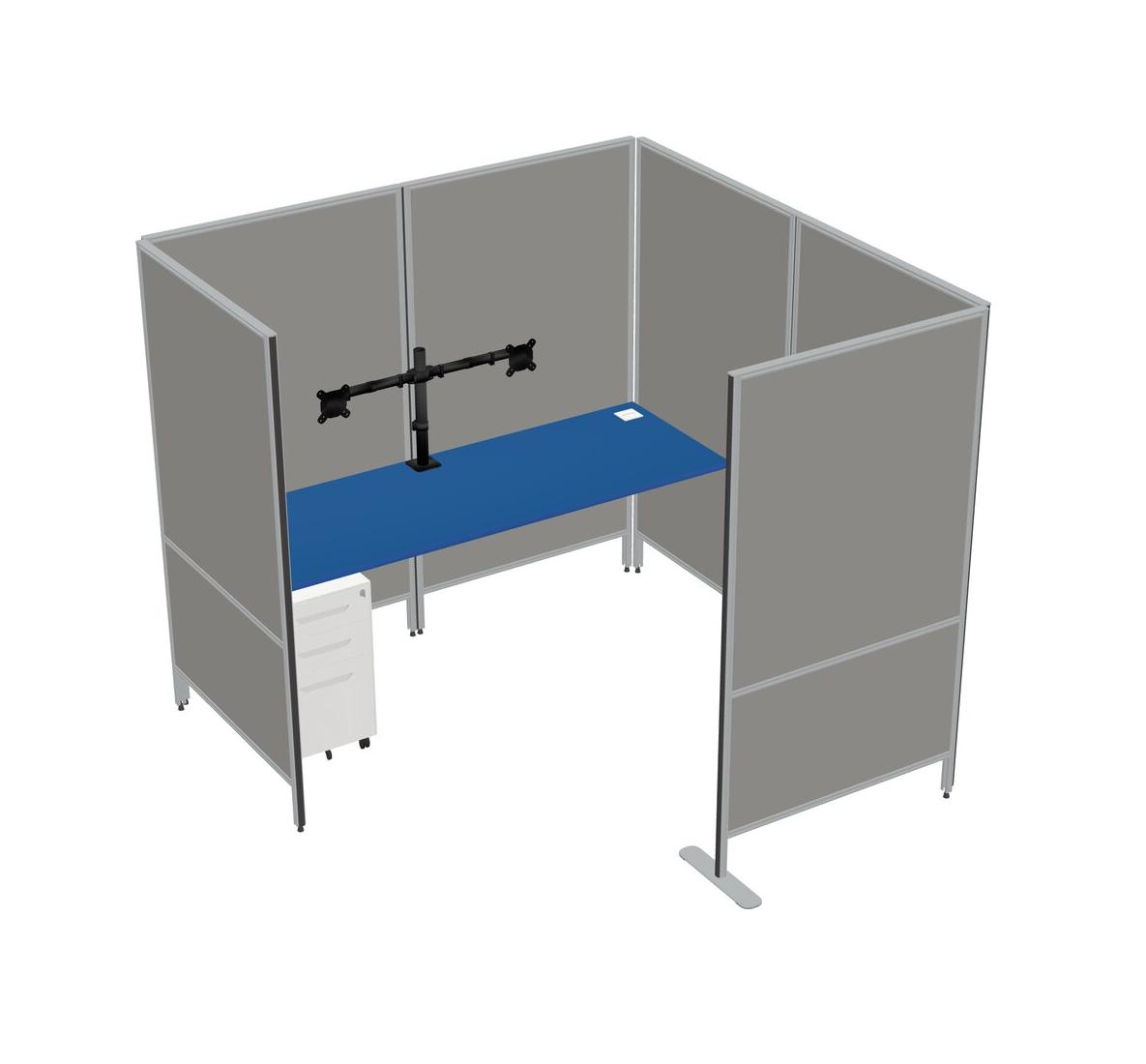 Système De Panneaux Flexibles Prism Blue Avec Intimité Pour 1 Personne + Tiroirs Mobiles En Métal + Bras D'écran (bras Doubles)