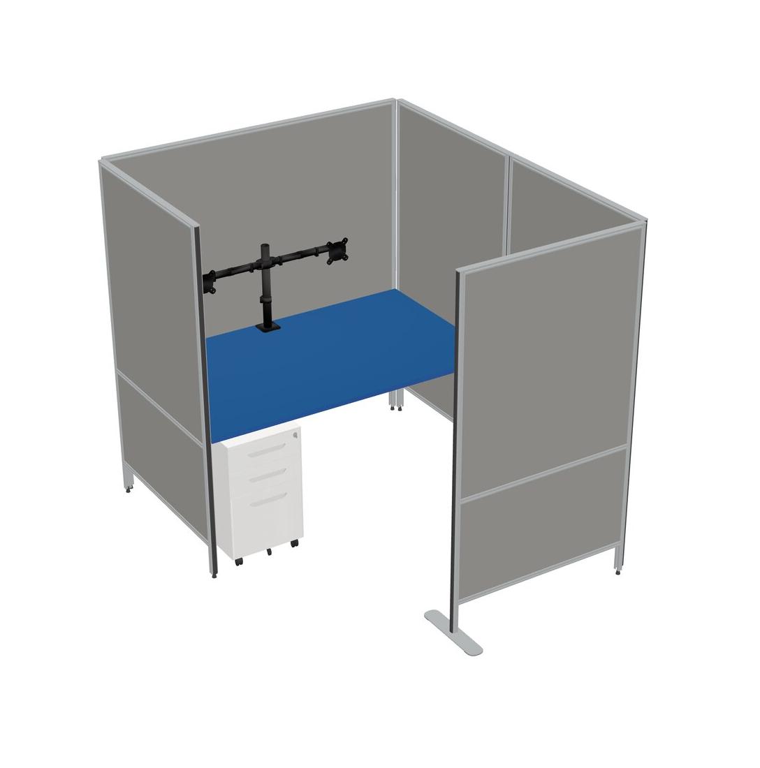 Système De Panneaux Flexibles Prism Blue Avec Intimité Pour 1 Personne + Tiroirs Mobiles En Métal + Bras D'écran (bras Doubles)