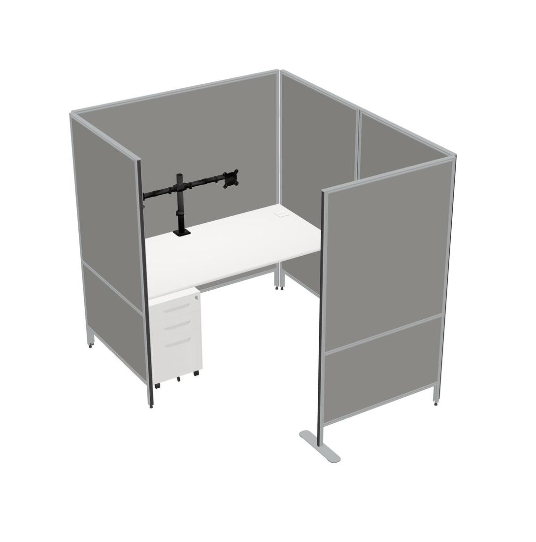 Système De Panneaux Flexibles Blancs Avec Intimité Pour 1 Personne + Tiroirs Mobiles En Métal + Bras D'écran (bras Doubles)