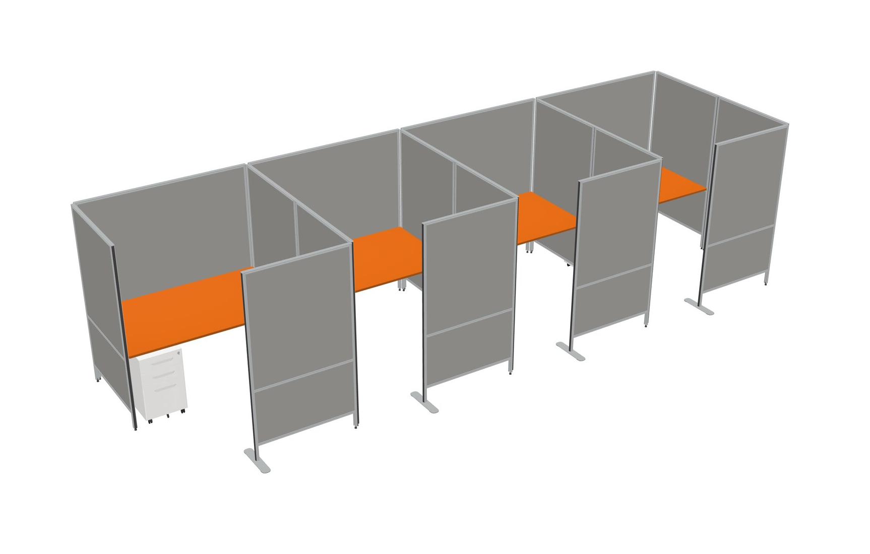 Système De Panneaux Flexibles Orange Avec Intimité Pour 4 Tiroirs Mobiles En Métal