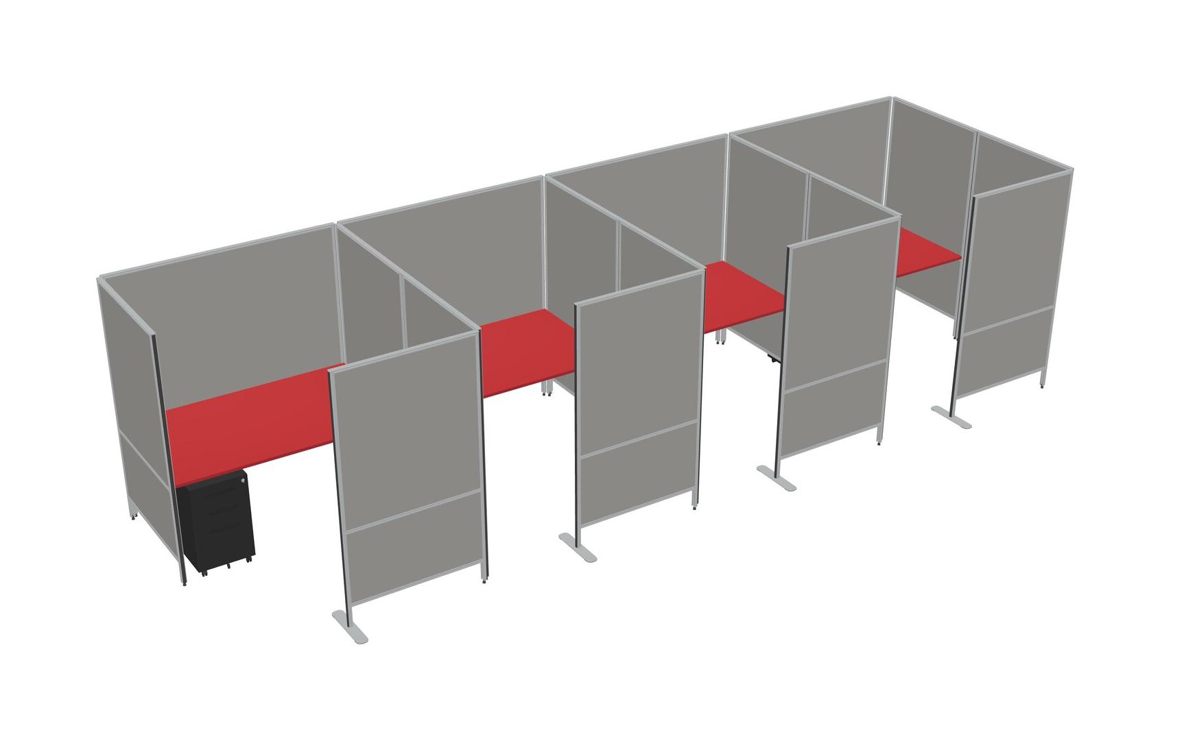 Système De Panneaux Flexibles Prism Red Avec Intimité Pour 4 Tiroirs Mobiles En Métal