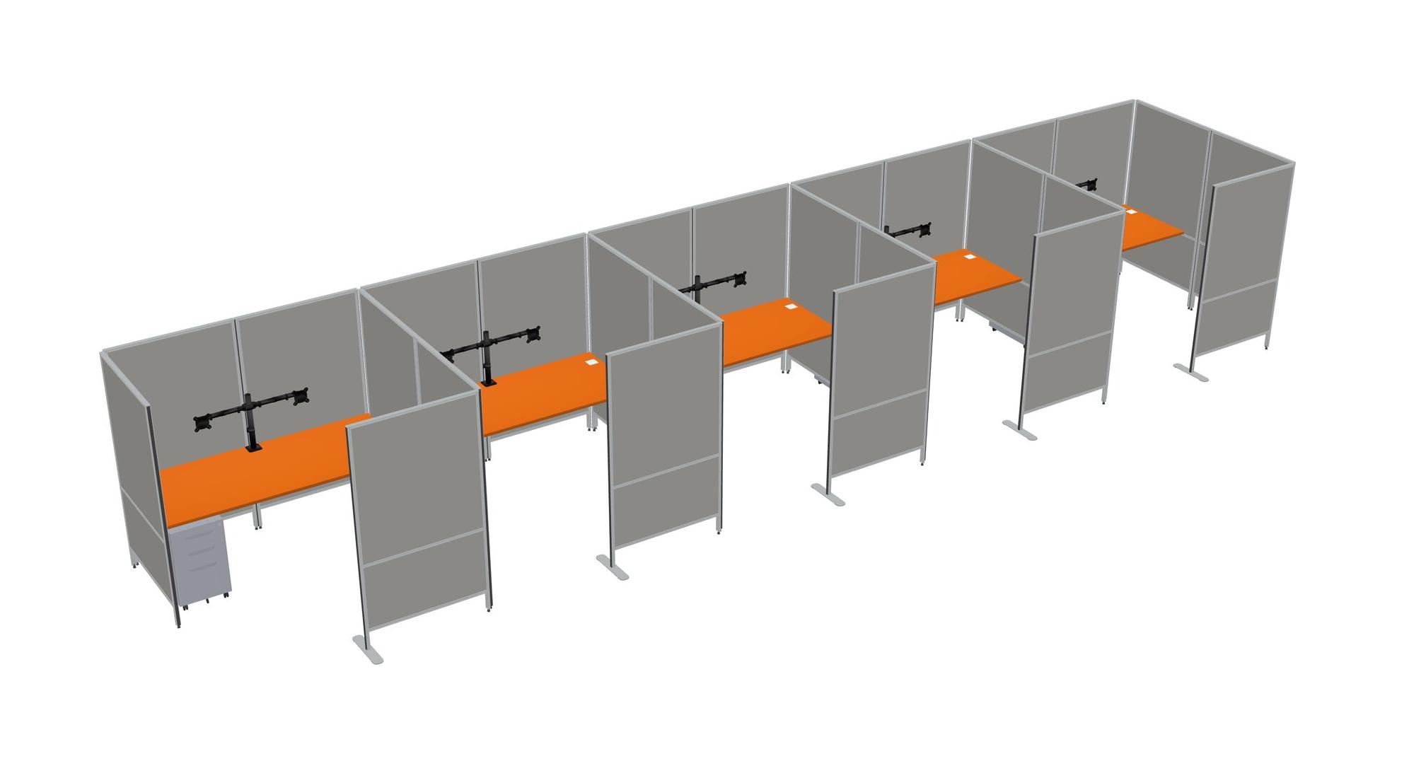 Système De Panneaux Flexibles Orange Avec Intimité Pour 5 Personnes + Tiroirs Mobiles En Métal + Bras D'écran (bras Doubles)