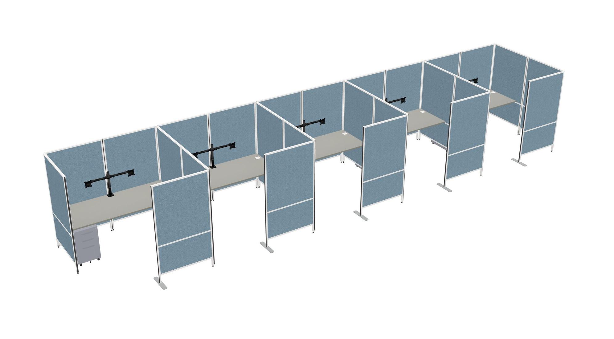 Système De Panneaux Flexibles Grey Shadows Avec Intimité Pour 5 Personnes + Tiroirs Mobiles En Métal + Bras D'écran (bras Doubles)