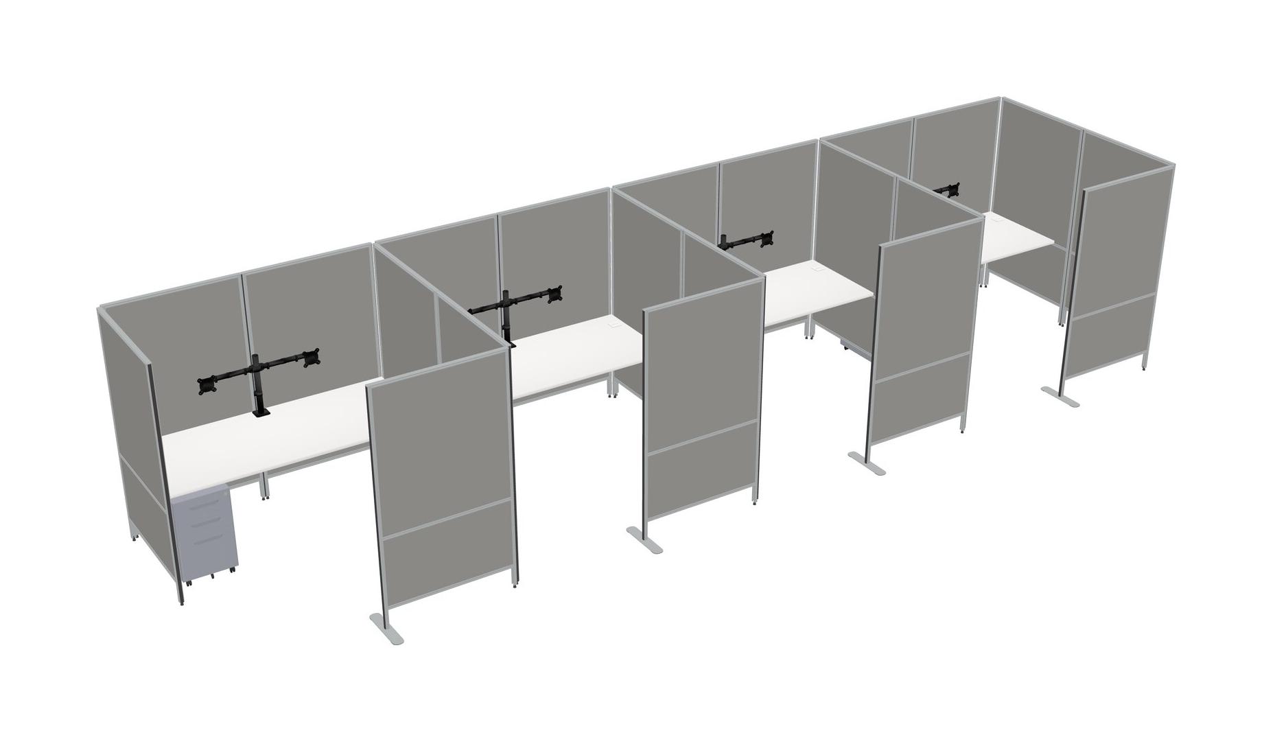 Système De Panneaux Flexibles Blancs Avec Intimité Pour 4 Personnes + Tiroirs Mobiles En Métal + Bras D'écran (bras Doubles)