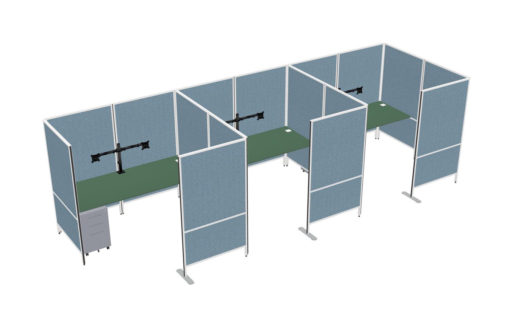 Système De Panneaux Flexibles Verts Avec Intimité Pour 3 Personnes + Tiroirs Mobiles En Métal + Bras D'écran (bras Doubles)