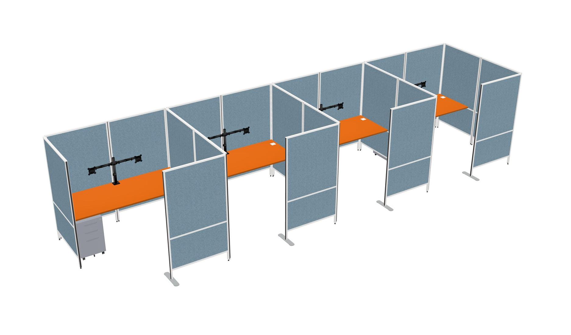Système De Panneaux Flexibles Orange Avec Intimité Pour 4 Personnes + Tiroirs Mobiles En Métal + Bras D'écran (bras Doubles)