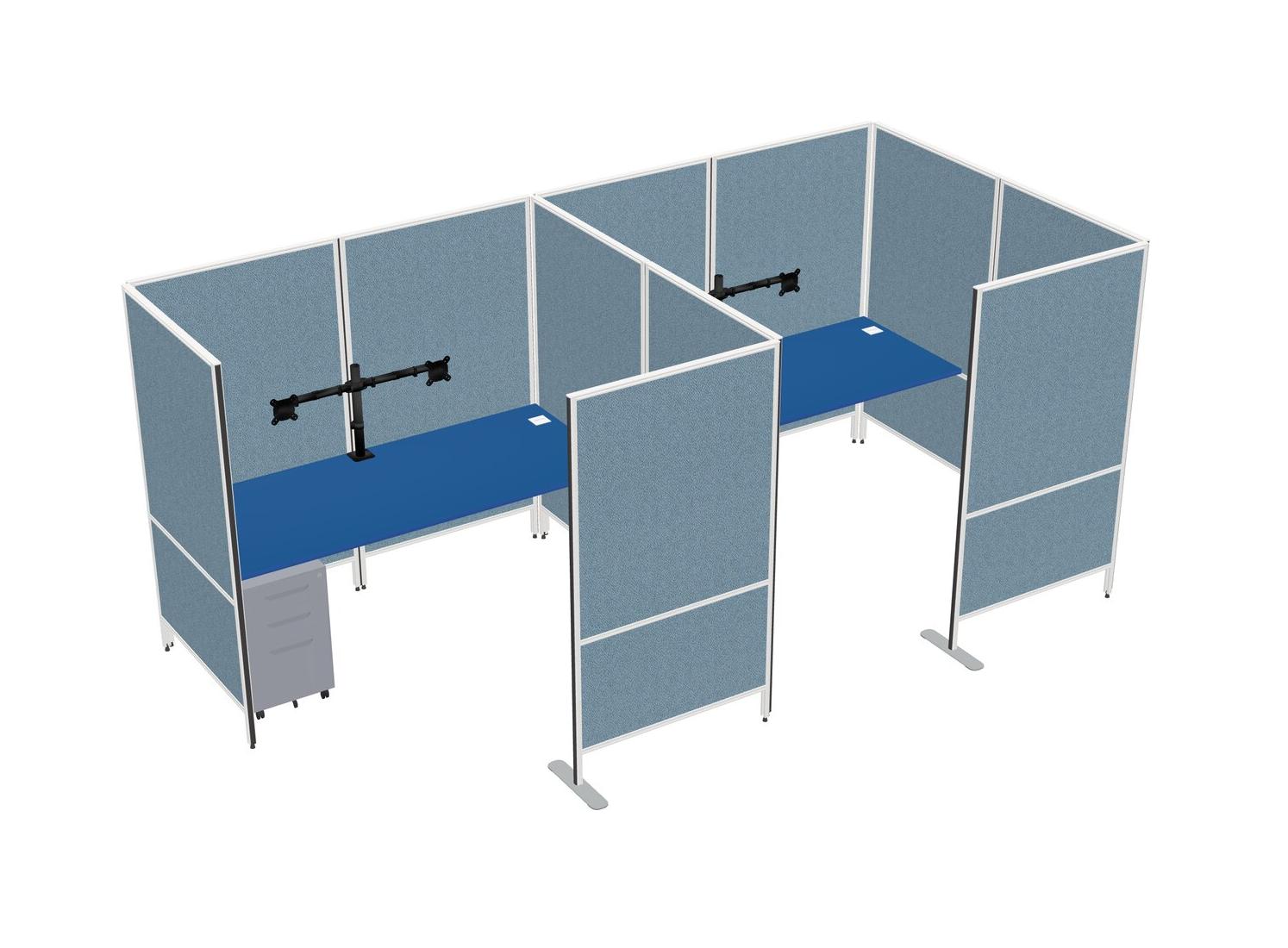 Système De Panneaux Flexibles Prism Blue Avec Intimité Pour 2 Personnes + Tiroirs Mobiles En Métal + Bras D'écran (bras Doubles)