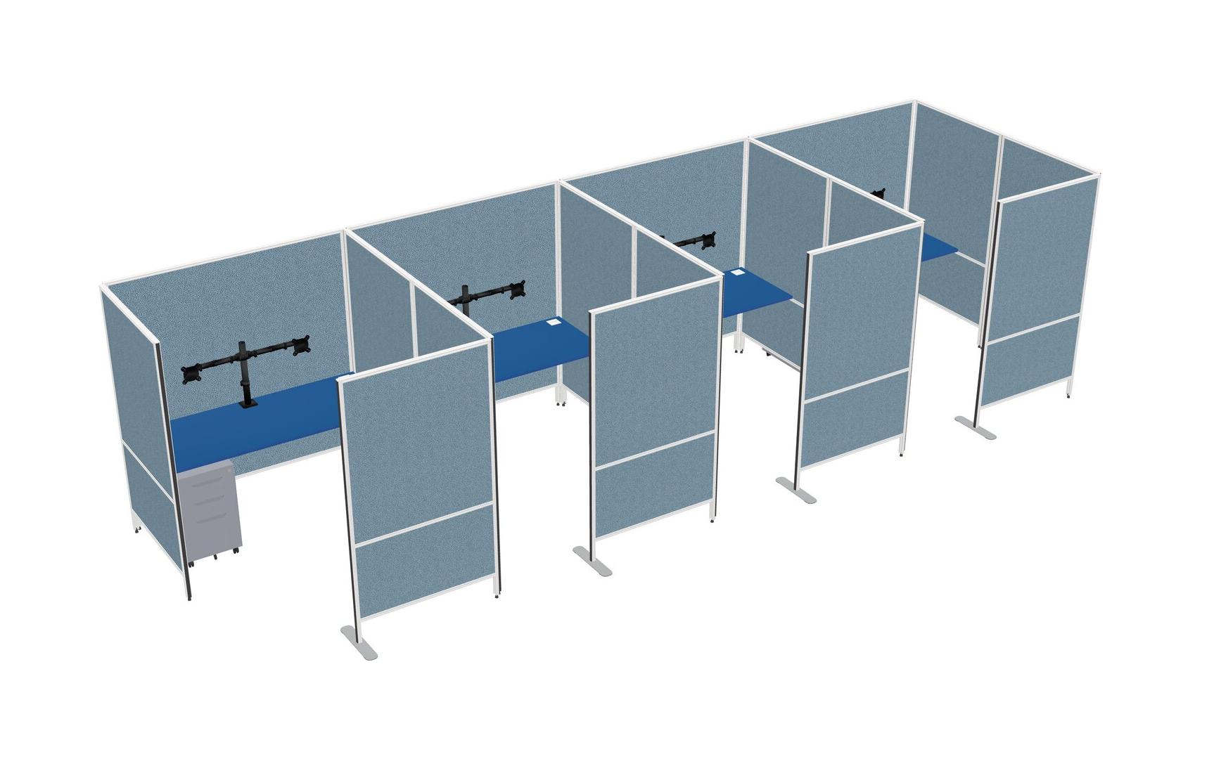 Système De Panneaux Flexibles Prism Blue Avec Intimité Pour 4 Personnes + Tiroirs Mobiles En Métal + Bras D'écran (bras Doubles)