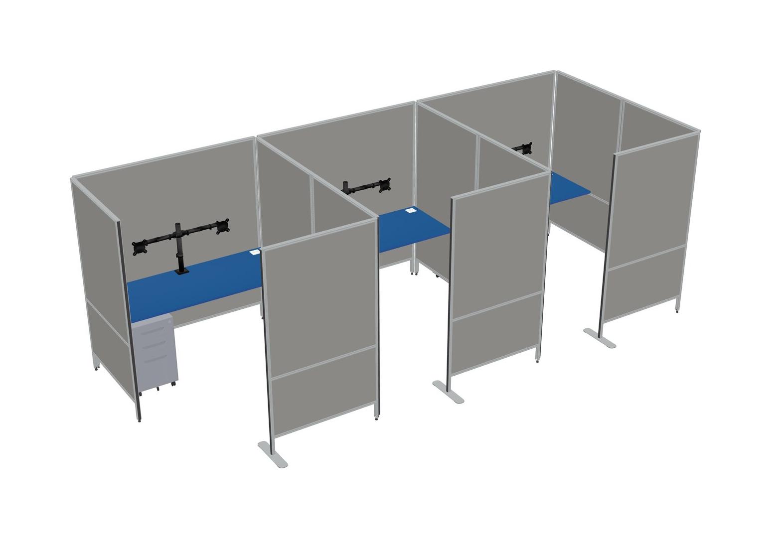 Système De Panneaux Flexibles Prism Blue Avec Intimité Pour 3 Personnes + Tiroirs Mobiles En Métal + Bras D'écran (bras Doubles)