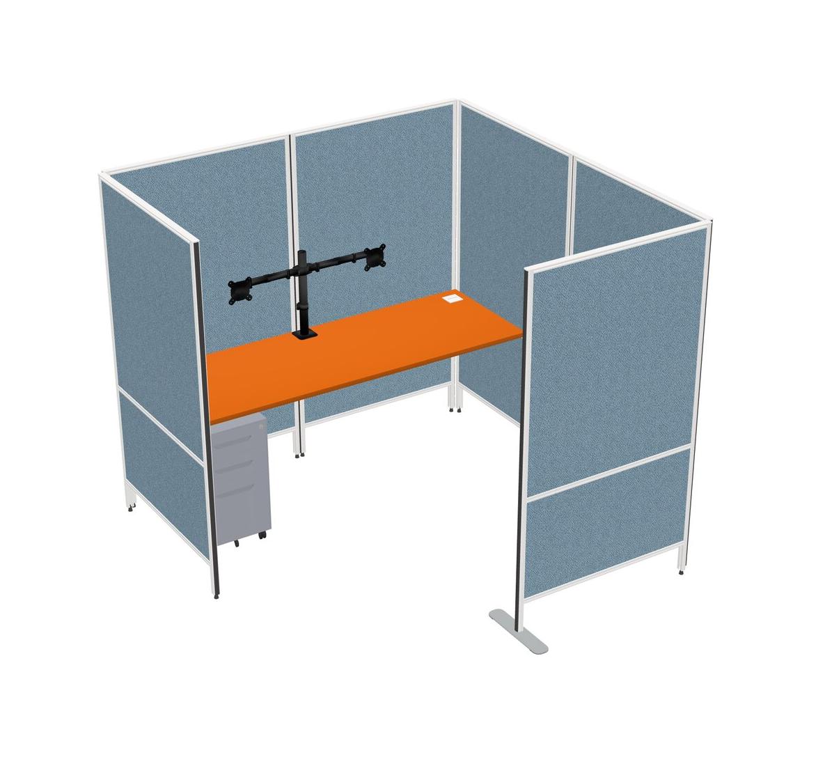 Système De Panneaux Flexibles Orange Avec Intimité Pour 1 Personne + Tiroirs Mobiles En Métal + Bras D'écran (bras Doubles)