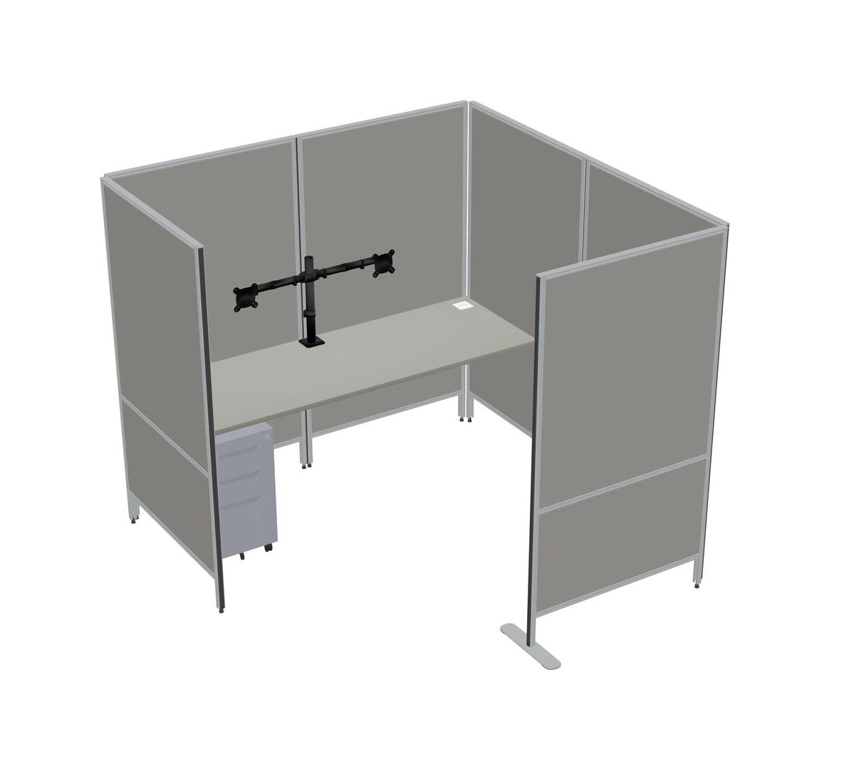 Système De Panneaux Flexibles Grey Shadows Avec Intimité Pour 1 Personne + Tiroirs Mobiles En Métal + Bras D'écran (bras Doubles)