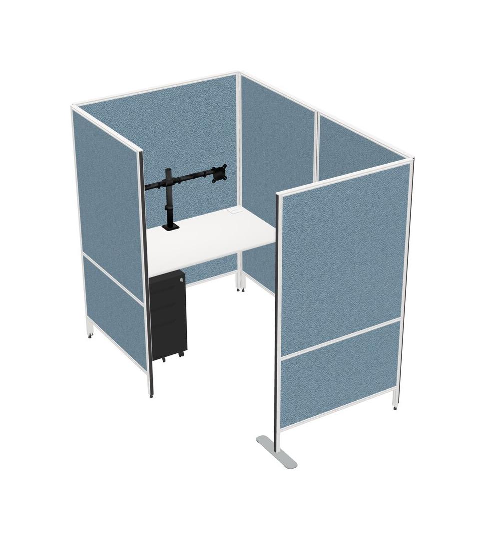 Système De Panneau Privé Blanc De Petite Taille + Tiroirs Mobiles En Métal + Bras De Moniteur (bras Doubles)