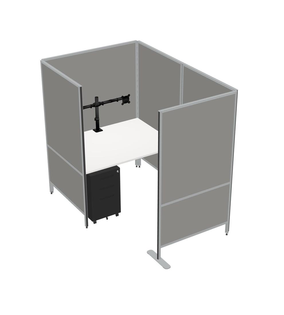 Système De Panneau Privé Blanc De Petite Taille + Tiroirs Mobiles En Métal + Bras De Moniteur (bras Doubles)
