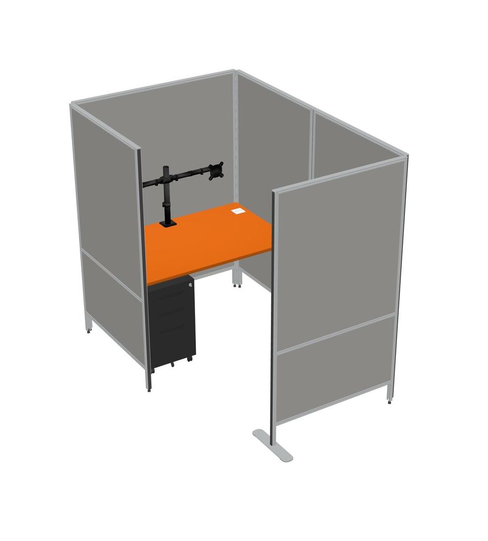 Système De Panneau Privé Orange Small + Tiroirs Mobiles En Métal + Bras De Moniteur (bras Doubles)