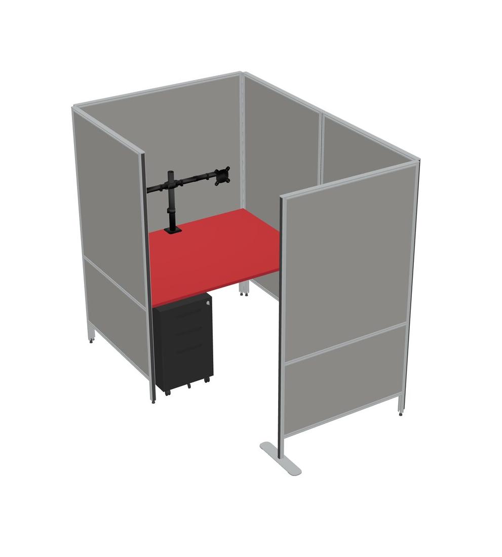 Système De Panneau Privé Prism Red Small + Tiroirs Mobiles En Métal + Bras De Moniteur (bras Doubles)