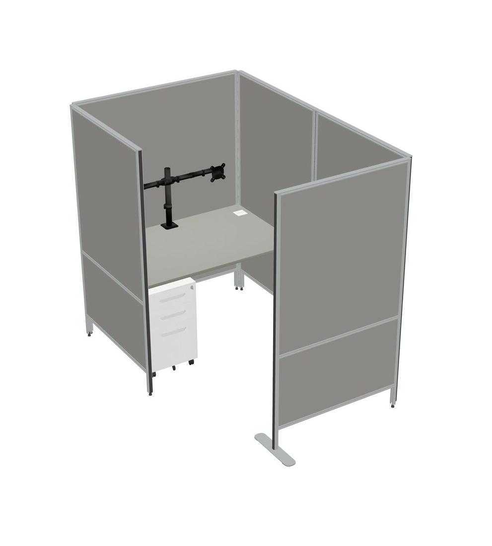 Système De Petits Panneaux Privés Grey Shadows + Tiroirs Mobiles En Métal + Bras De Moniteur (bras Doubles)