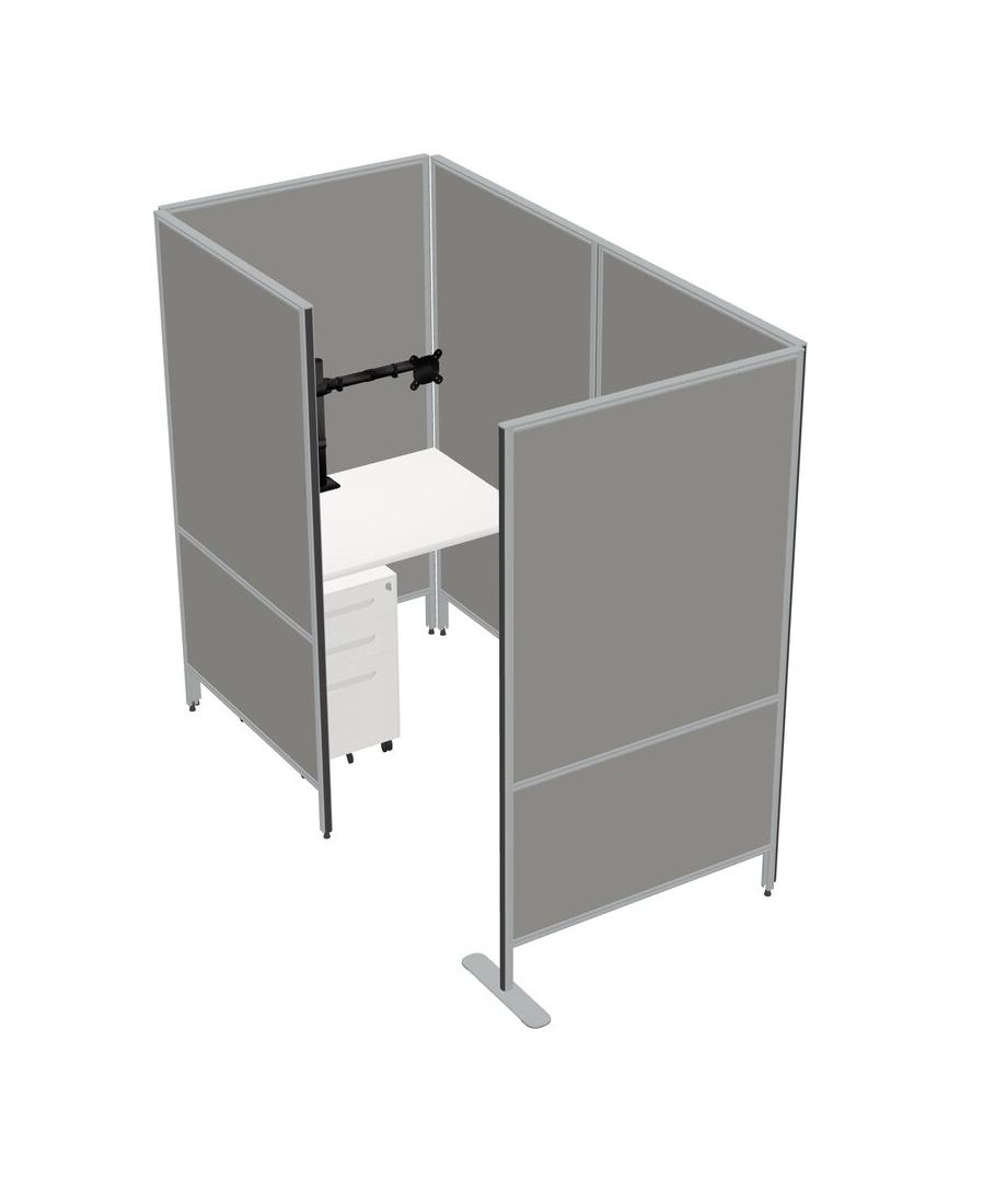 Système De Panneau Privé Blanc De Petite Taille + Tiroirs Mobiles En Métal + Bras De Moniteur (bras Doubles)