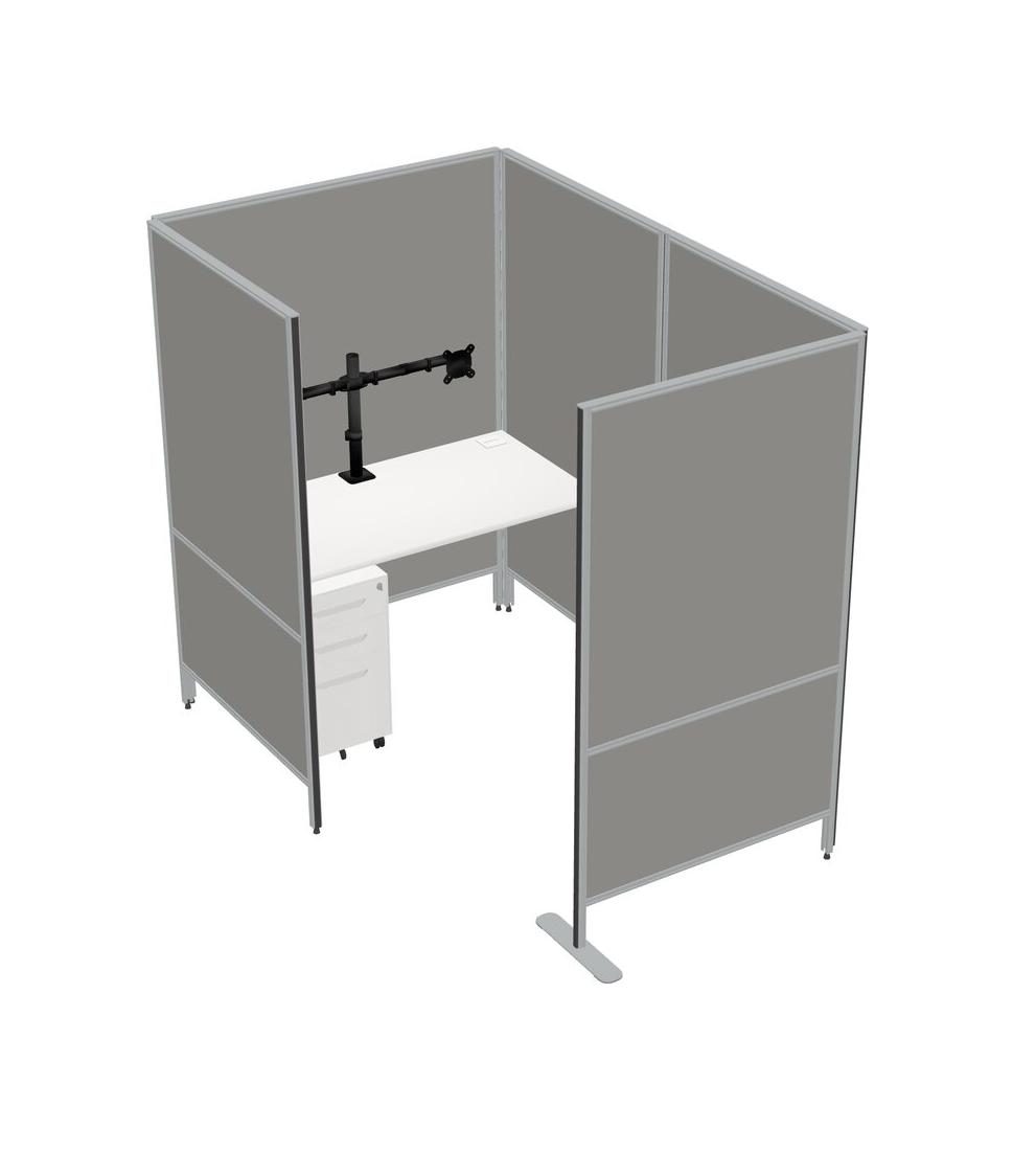 Système De Panneau Privé Blanc De Petite Taille + Tiroirs Mobiles En Métal + Bras De Moniteur (bras Doubles)