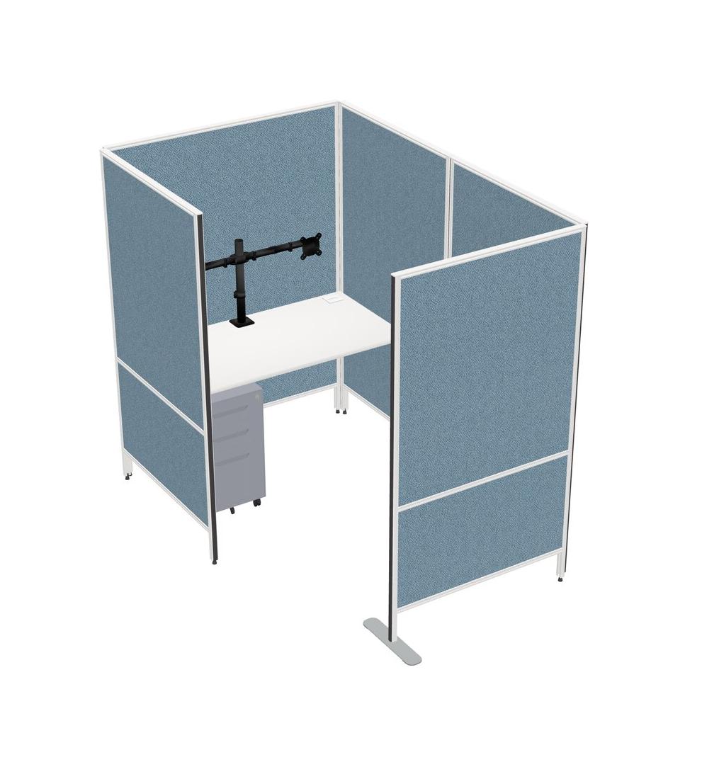 Système De Panneau Privé Blanc De Petite Taille + Tiroirs Mobiles En Métal + Bras De Moniteur (bras Doubles)